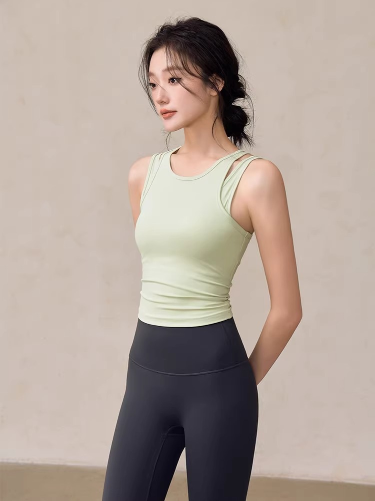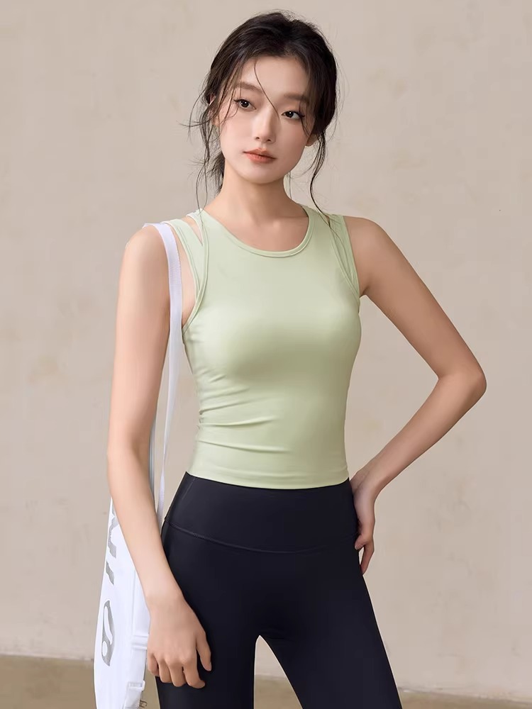 새로운 스포츠 조끼 원피스 컵 와이드 숄더 스트랩 고강도 I 자형 아름다운 뒤로 긴 가짜 투피스 요가 조끼 탑