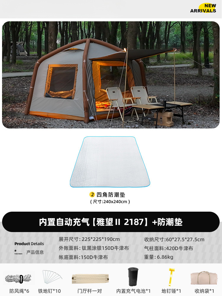 • Yawang II 2187 자동 팽창식 텐트 [원클릭 팽창식 풀 텐트 티타늄 블랙 패브릭]