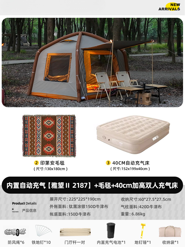 • 자동 공기주입식 내장 [야왕II 2187] + 방습매트 + 담요 + 공기주입식 침대