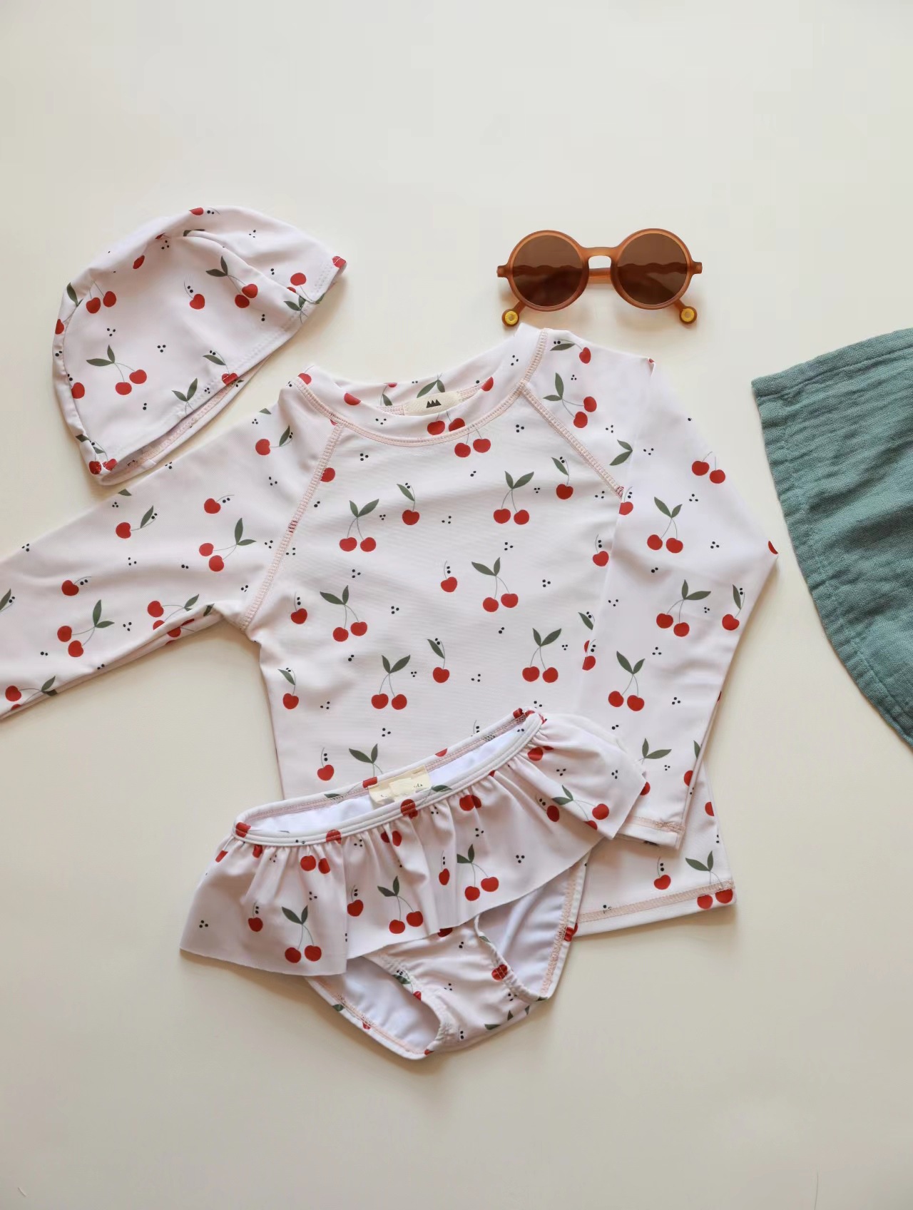 여아용 인스 플로럴 분리형 수영복 2026 신상 아동용 속건성 수영복 여아용 긴팔 자외선 차단 수영복
