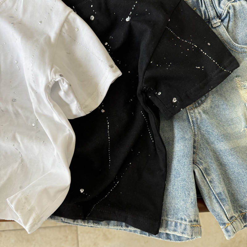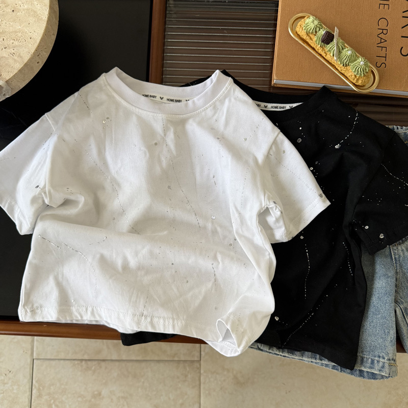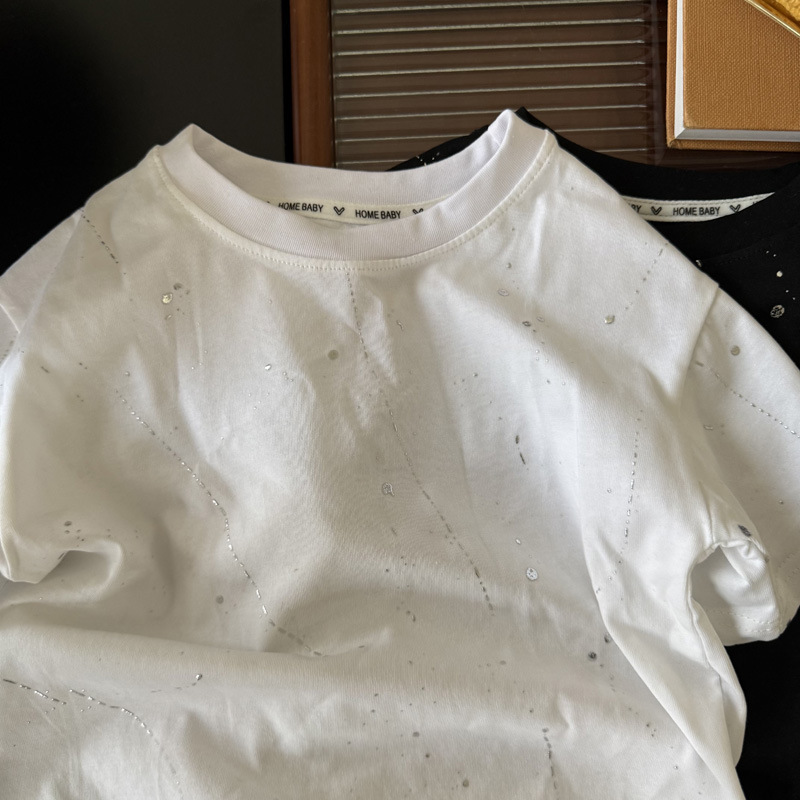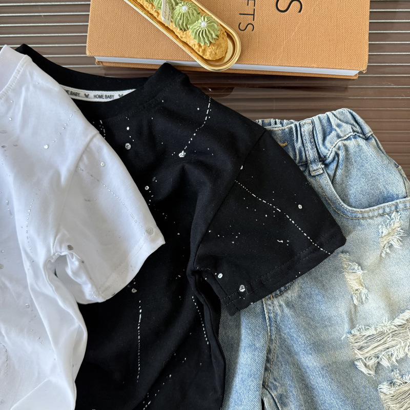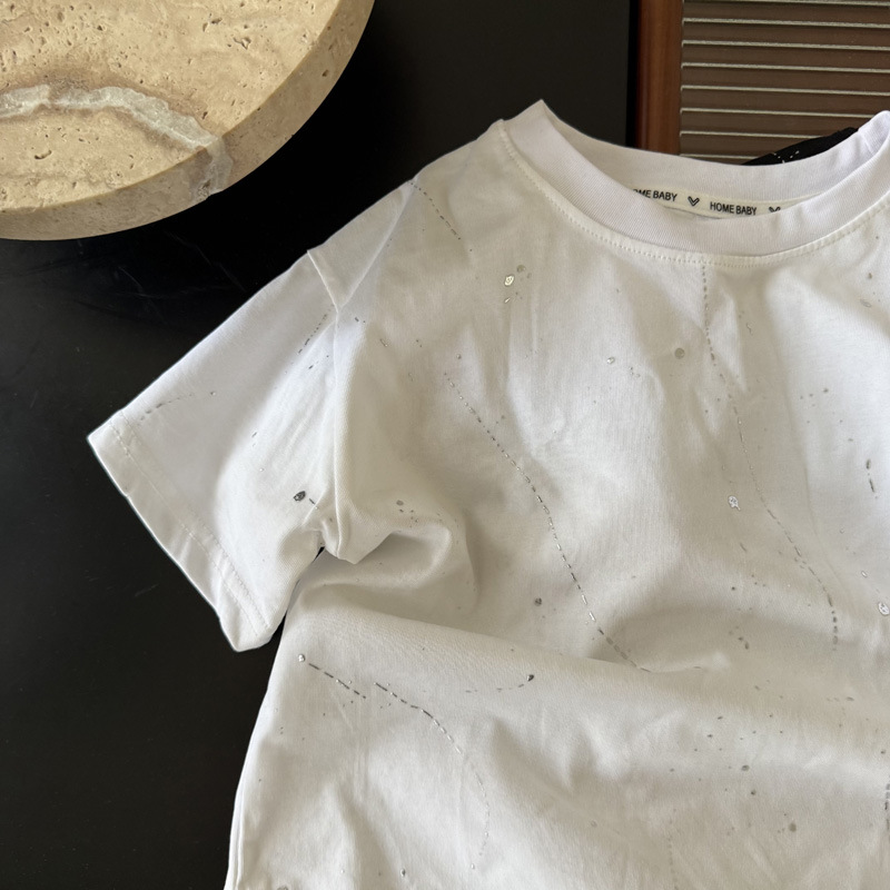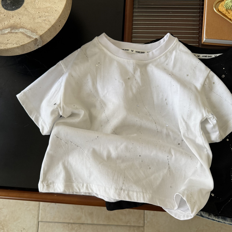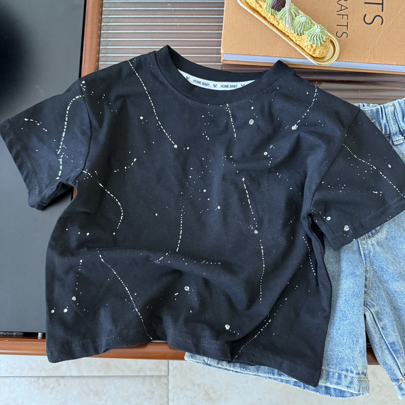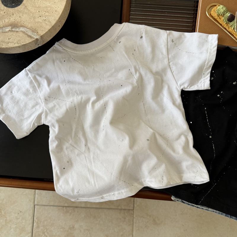 국경 간 대외 무역 어린이 여름 반팔 2025 새로운 패션 서양식 어린이 중공업 레저 라운드 넥 티셔츠 조수스토어 가기