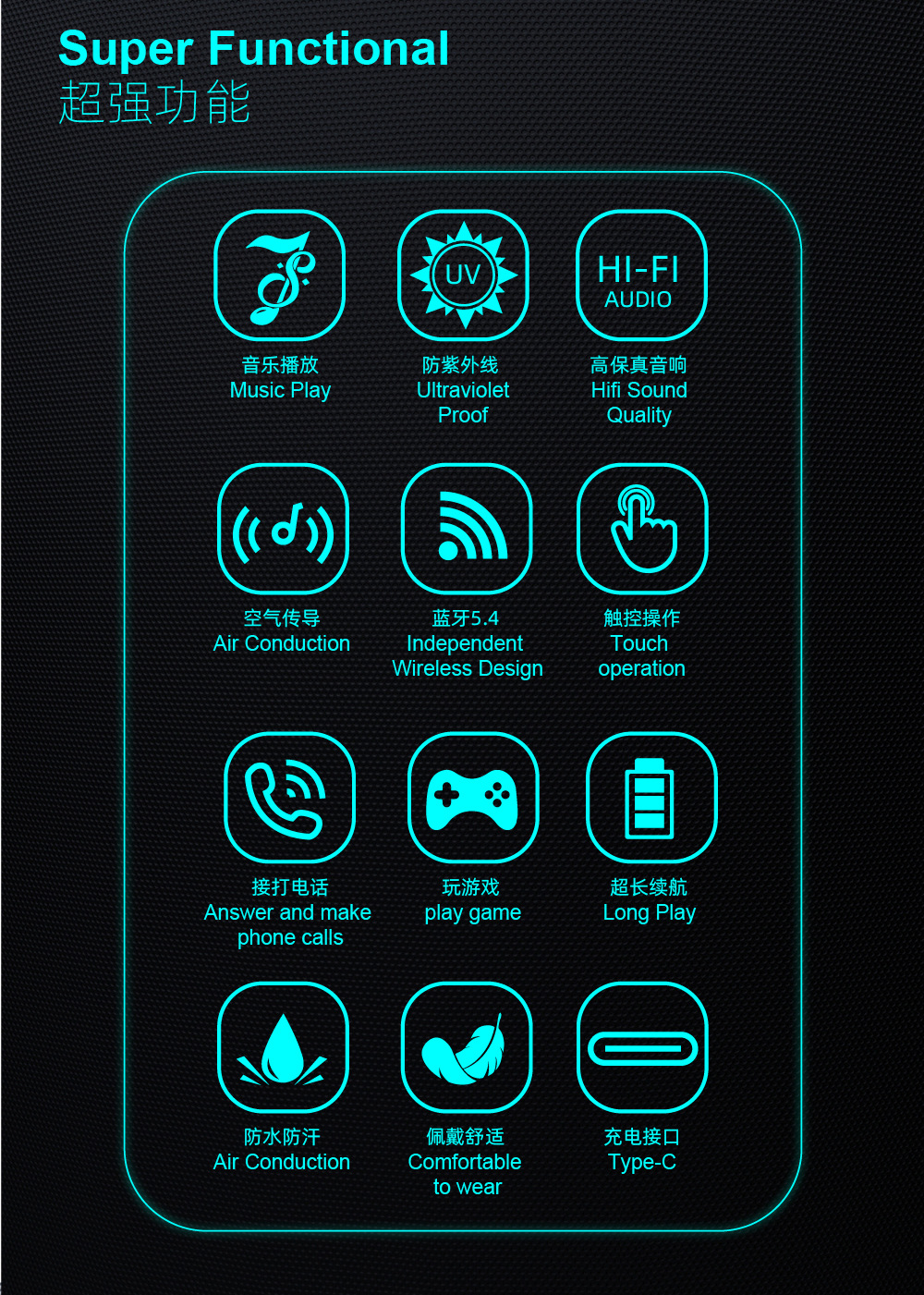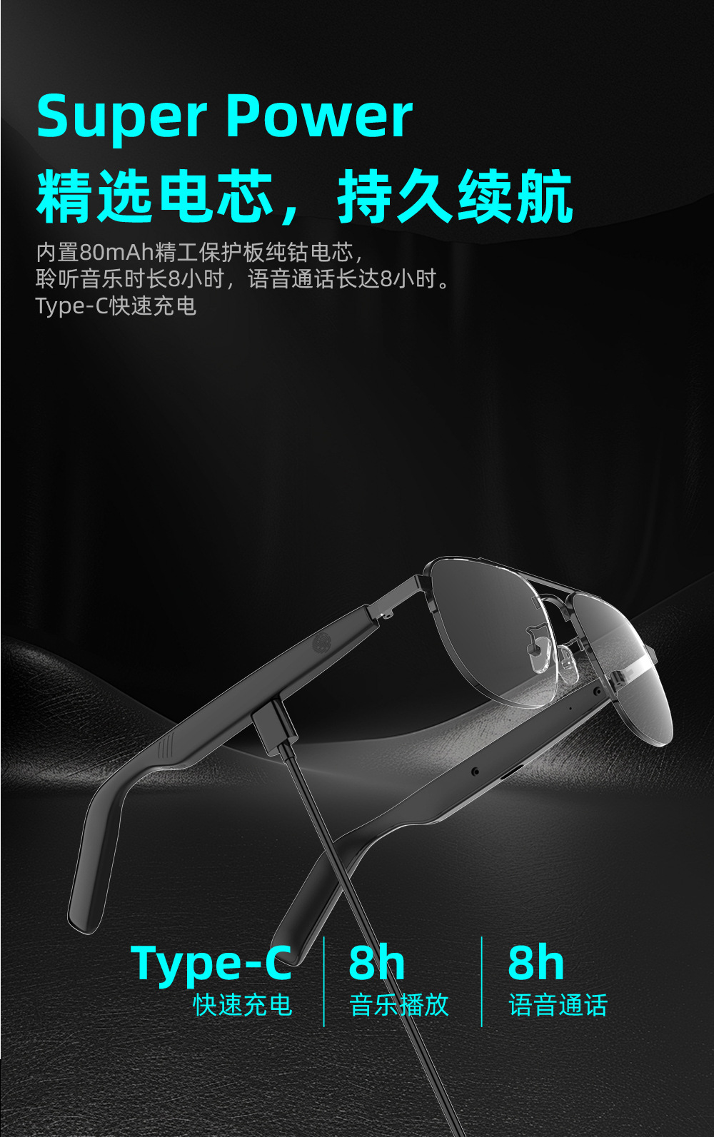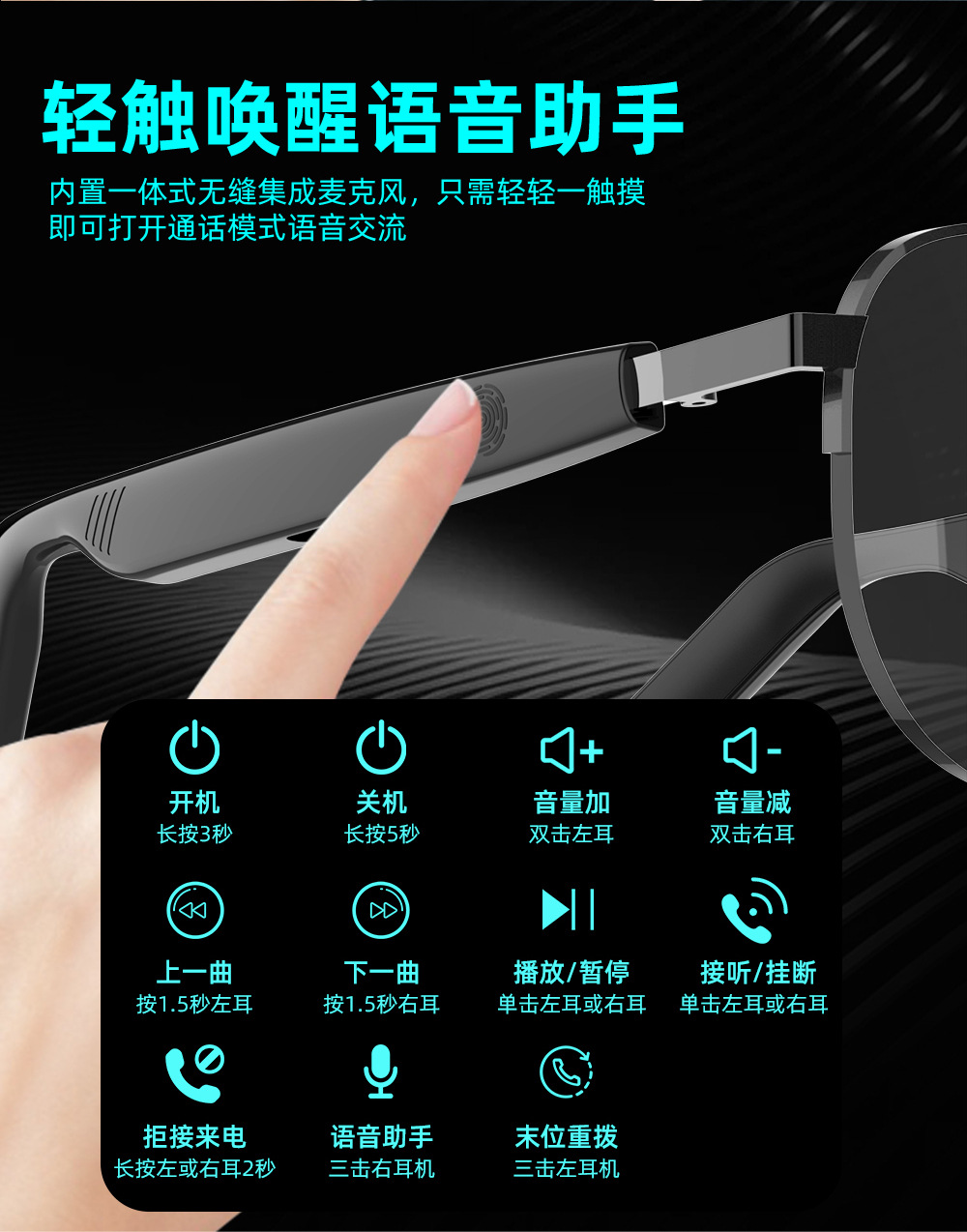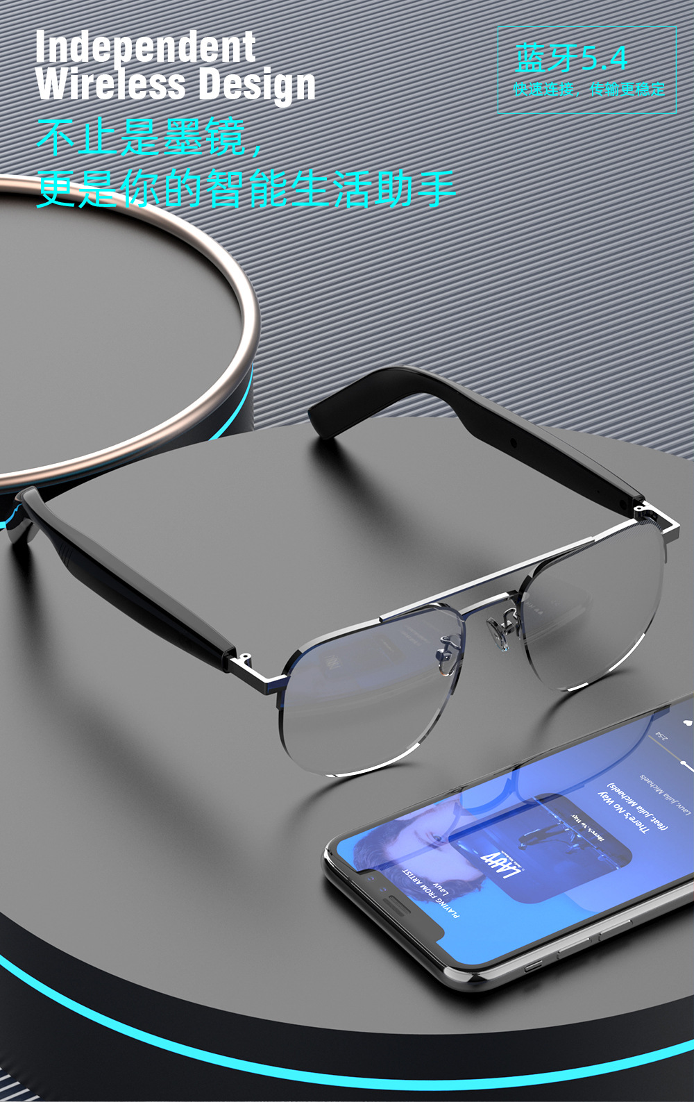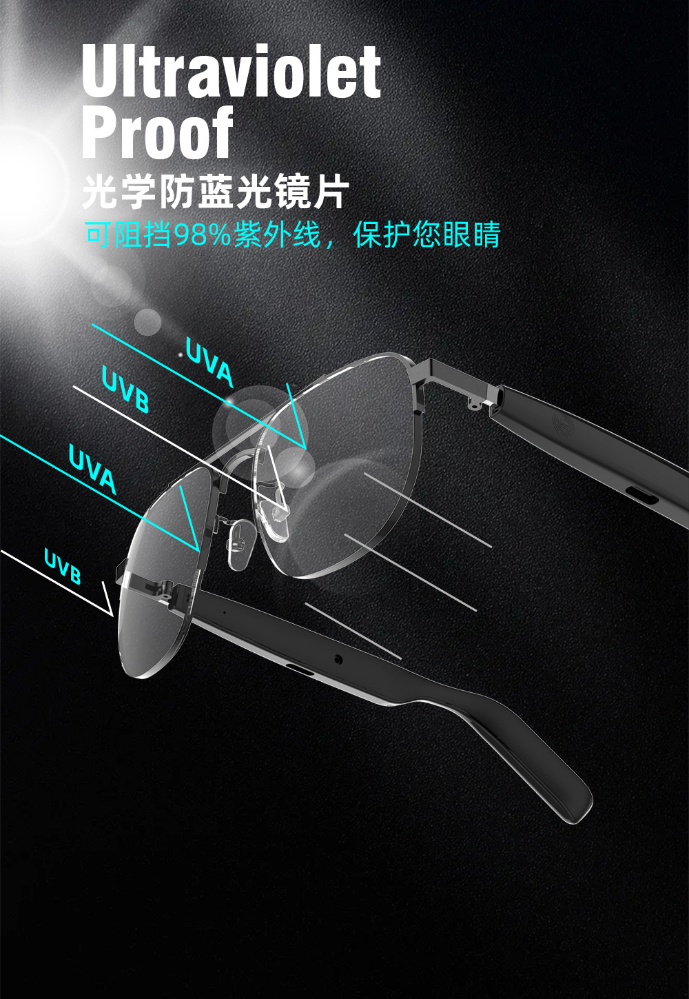 음악 듣기용 매우 긴 배터리 수명의 스마트 터치 안경, 블루투스 오디오 선글라스, 남녀공용 블루라이트 방지 선글라스