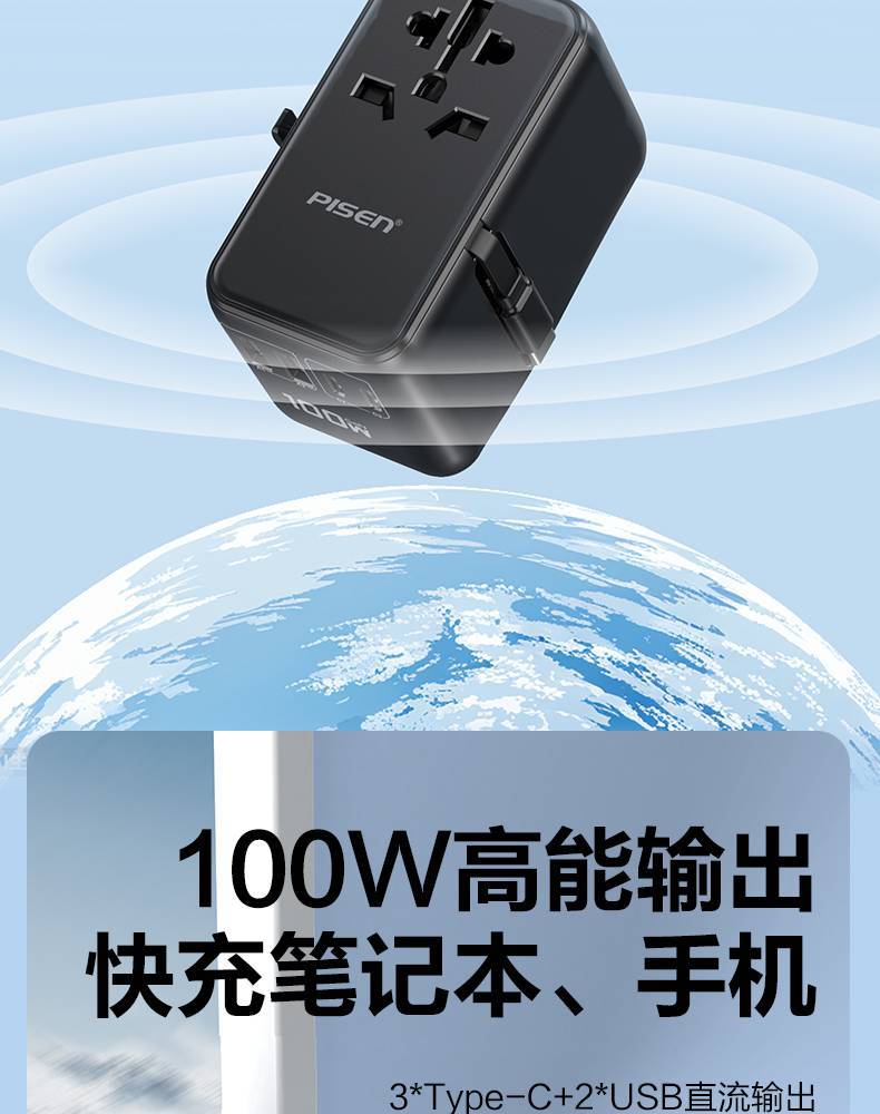 Pinsheng 국제 범용 스위칭 플러그 100W 텔레스코픽 라인 글로벌 여행 전환 충전기로 빠른 충전