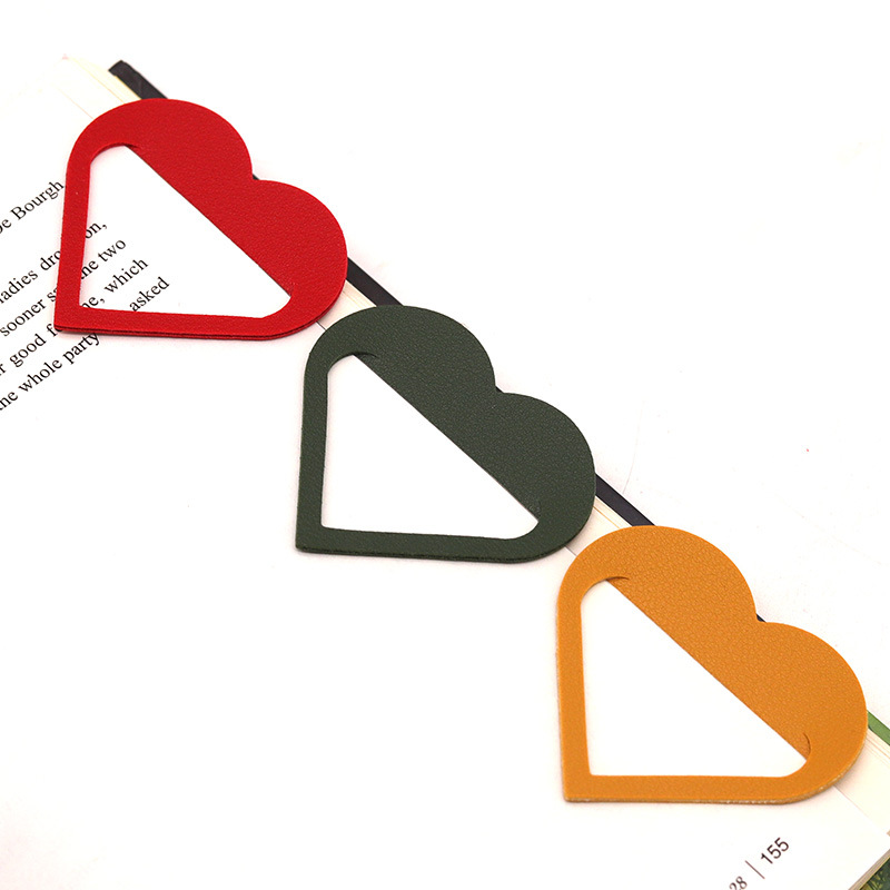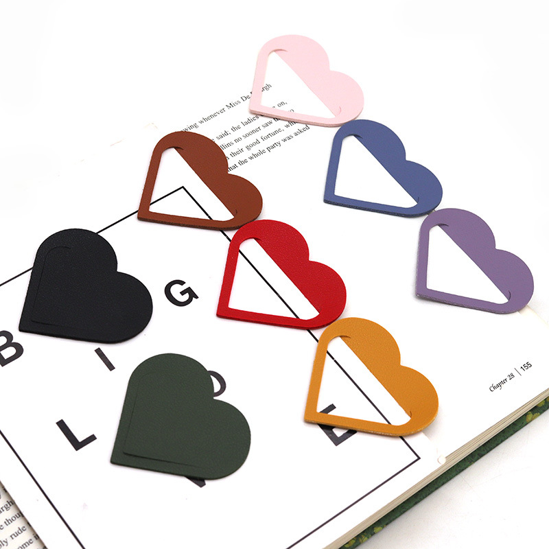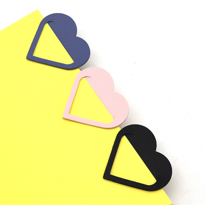 새로운 PU 가죽 하트 모양의 책갈피 창조적 인 미니 사랑 학생 책 페이지 클립 북마크 코너 보호 커버