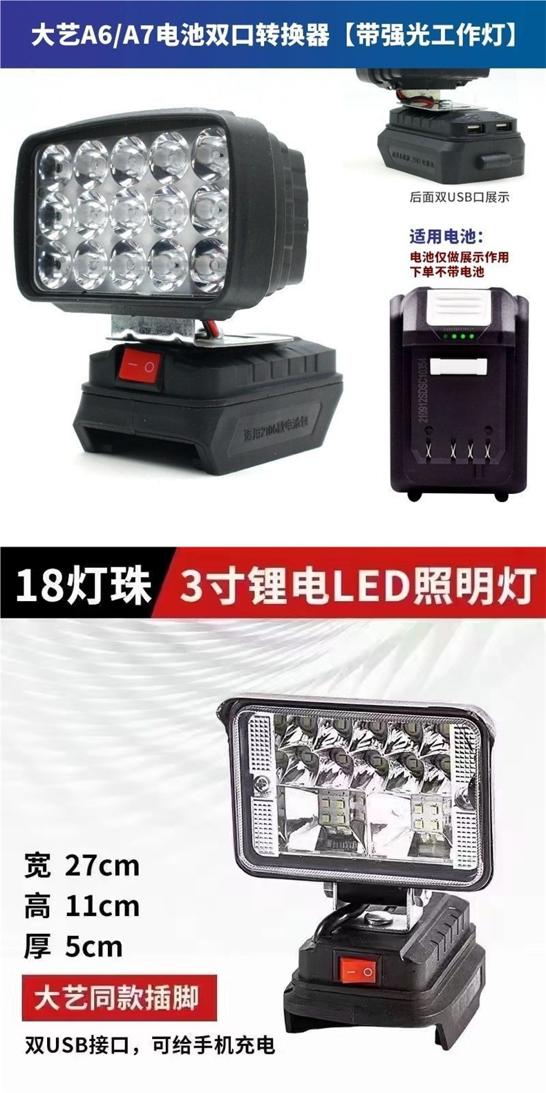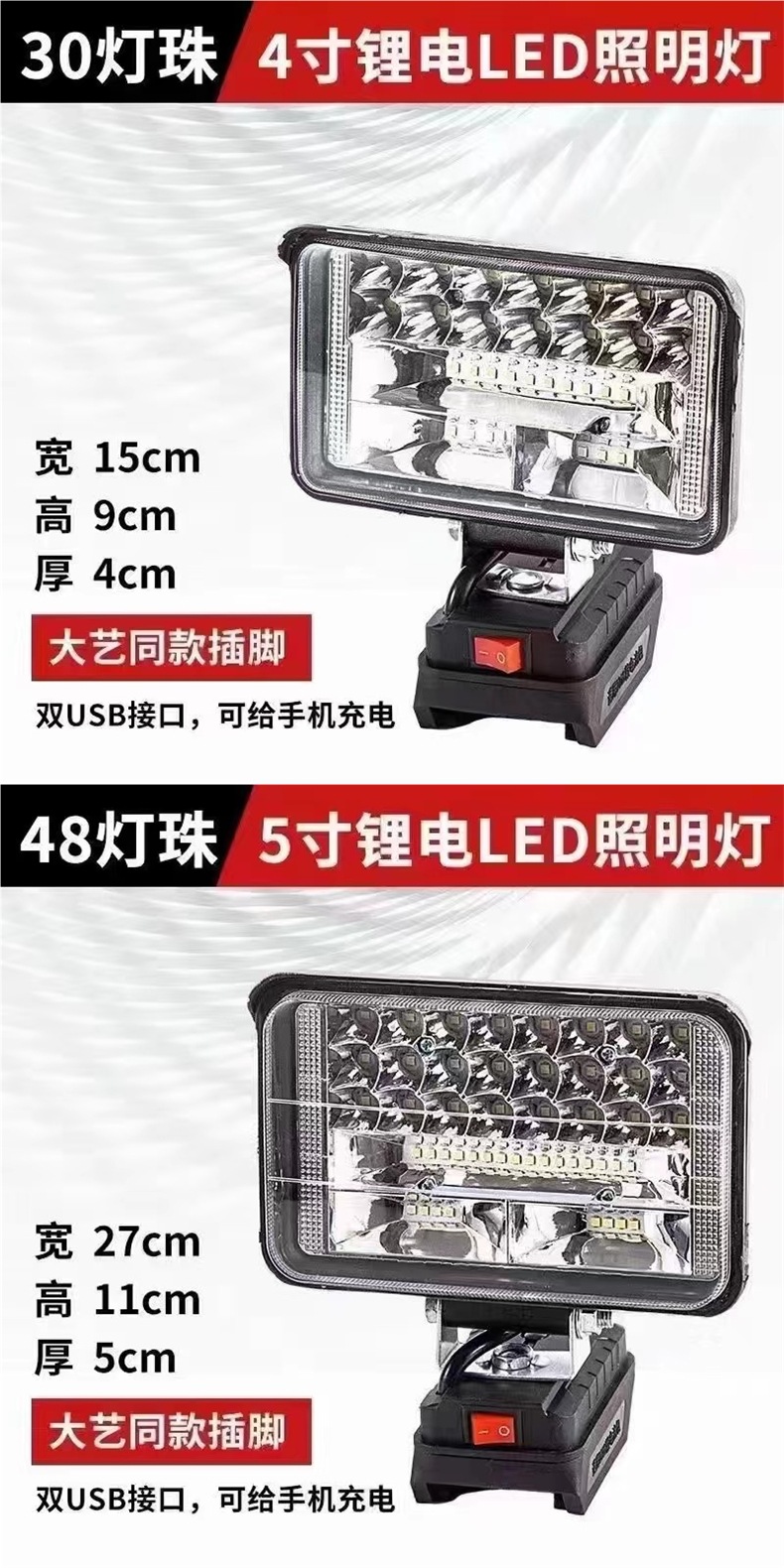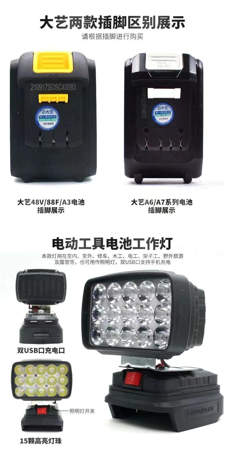 Dayi 48V88FA6A7 리튬 배터리 LED 작업 램프 조명 램프 USB 충전 보물 변환 비상 램프 링에 적합
