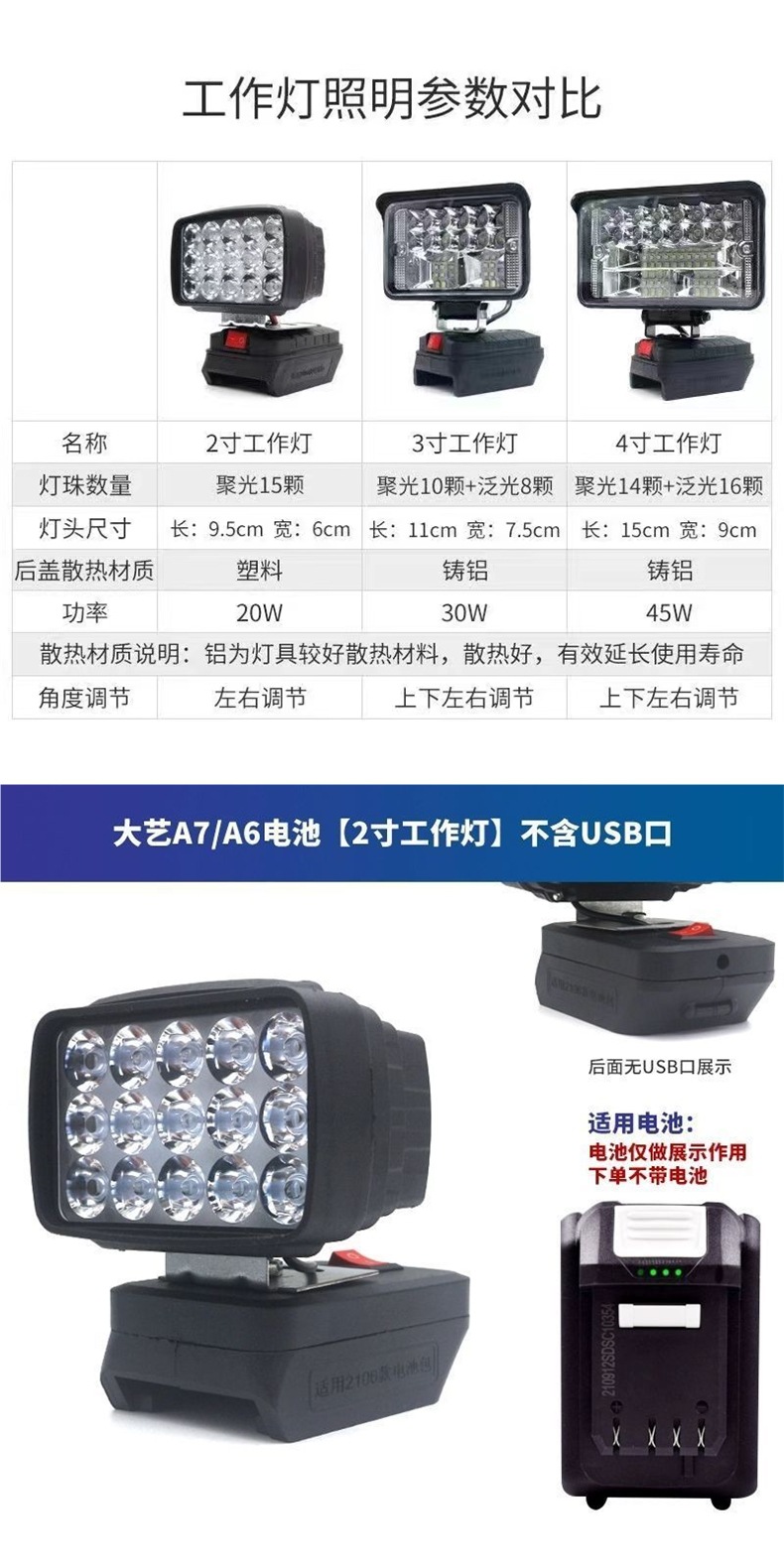 • Dayi A6A7 모델 [ 2inch ] USB가 없는 작업등