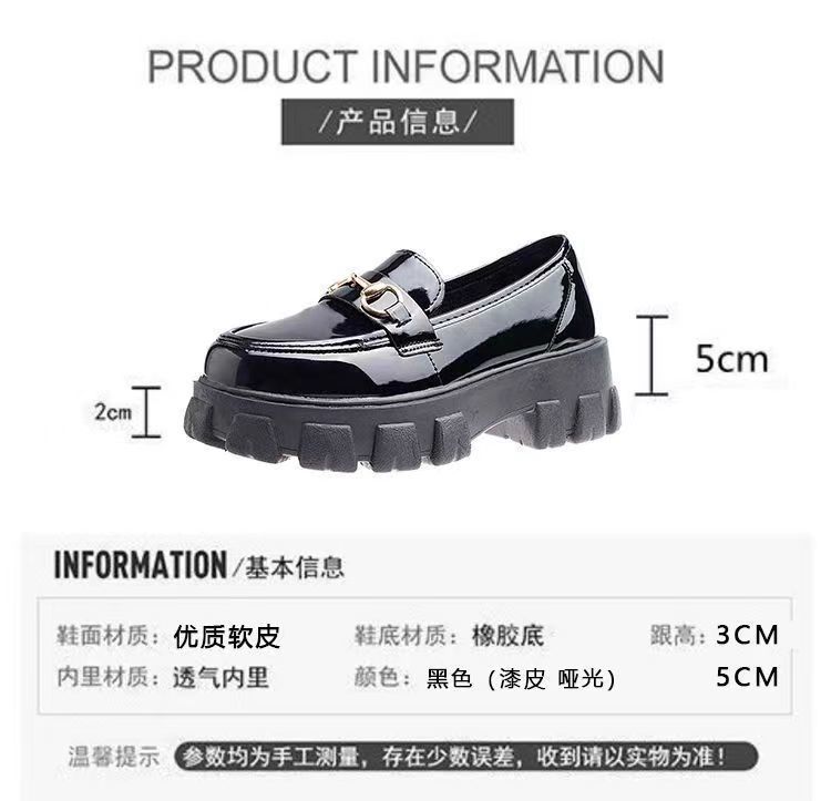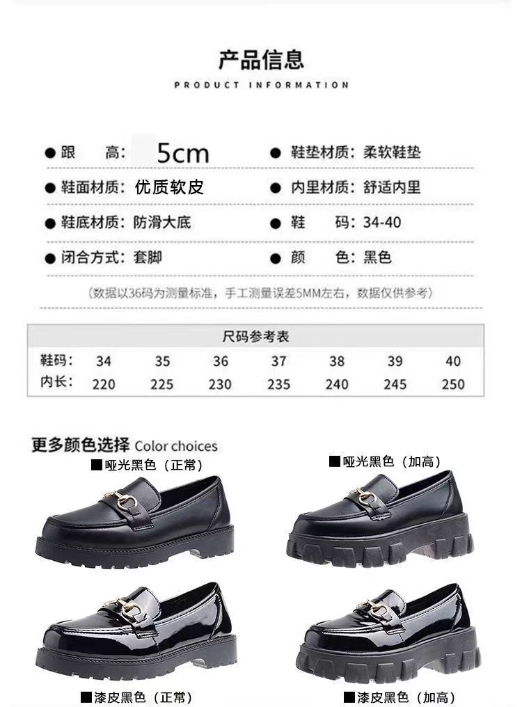 일본식 작은 가죽 신발 여성용 영국 스타일 블랙 싱글 레이어 신발 두꺼운 밑창 슬립 온 로퍼 신발스토어 가기
