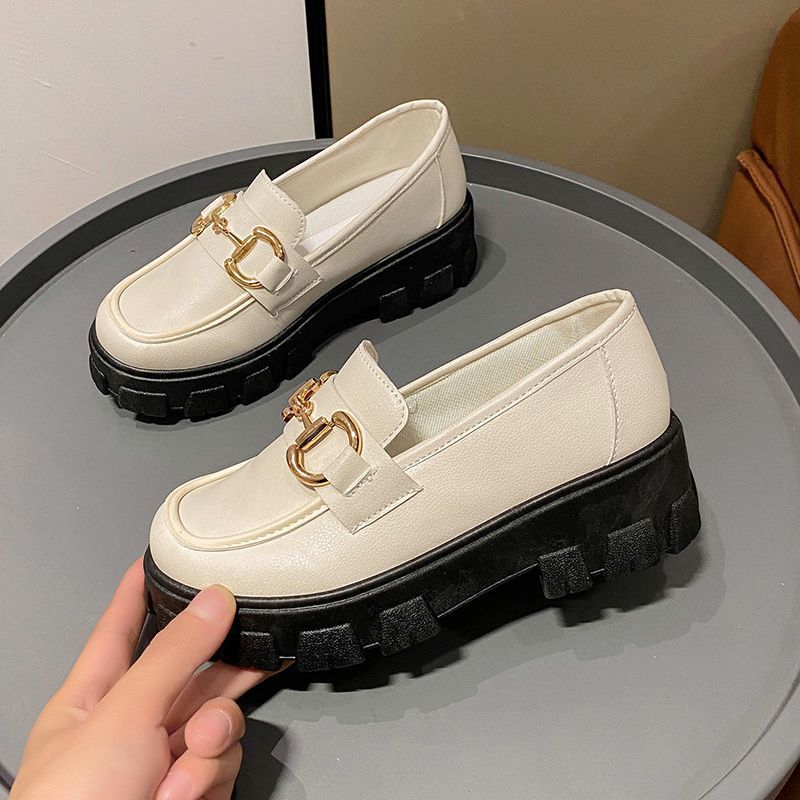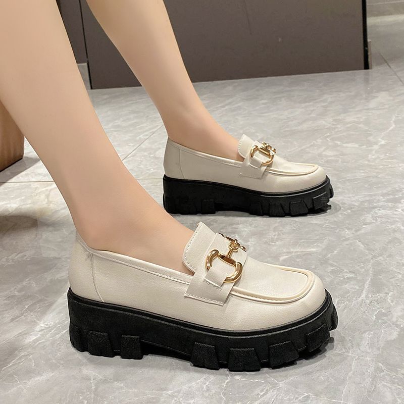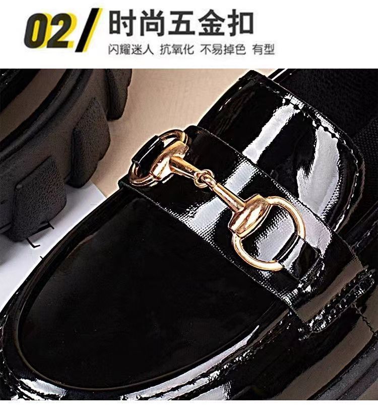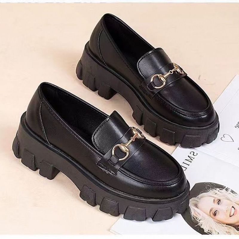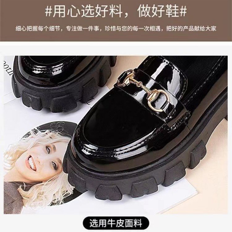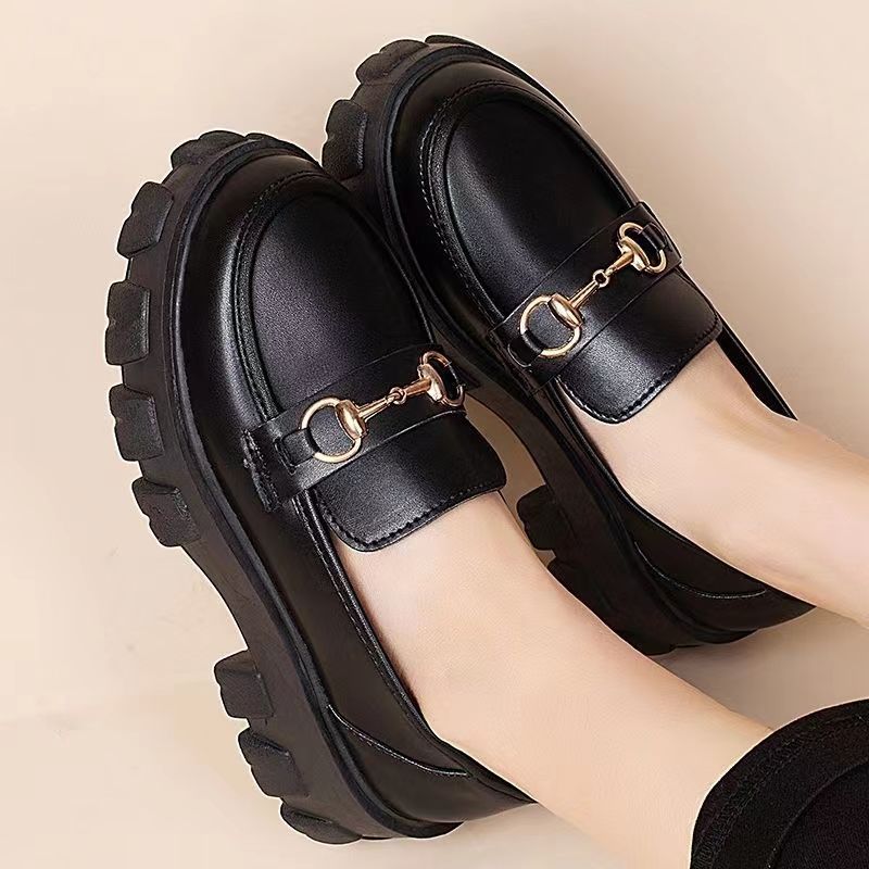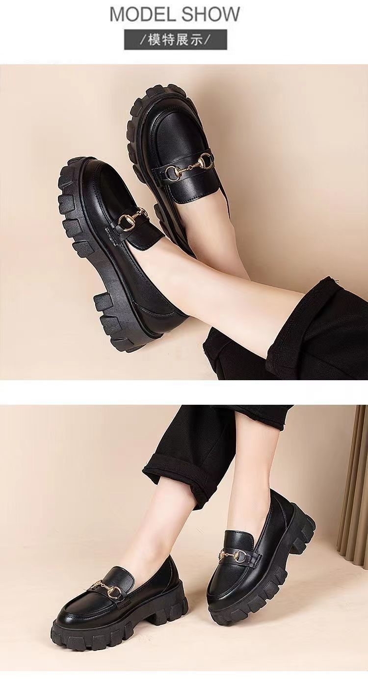 일본식 작은 가죽 신발 여성용 영국 스타일 블랙 싱글 레이어 신발 두꺼운 밑창 슬립 온 로퍼 신발