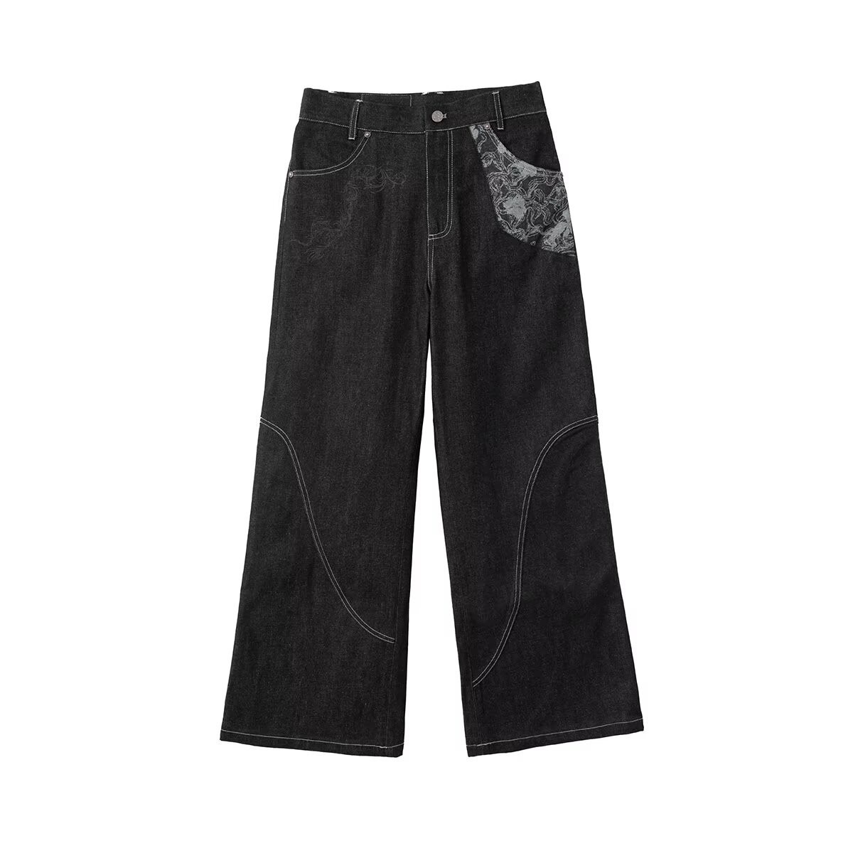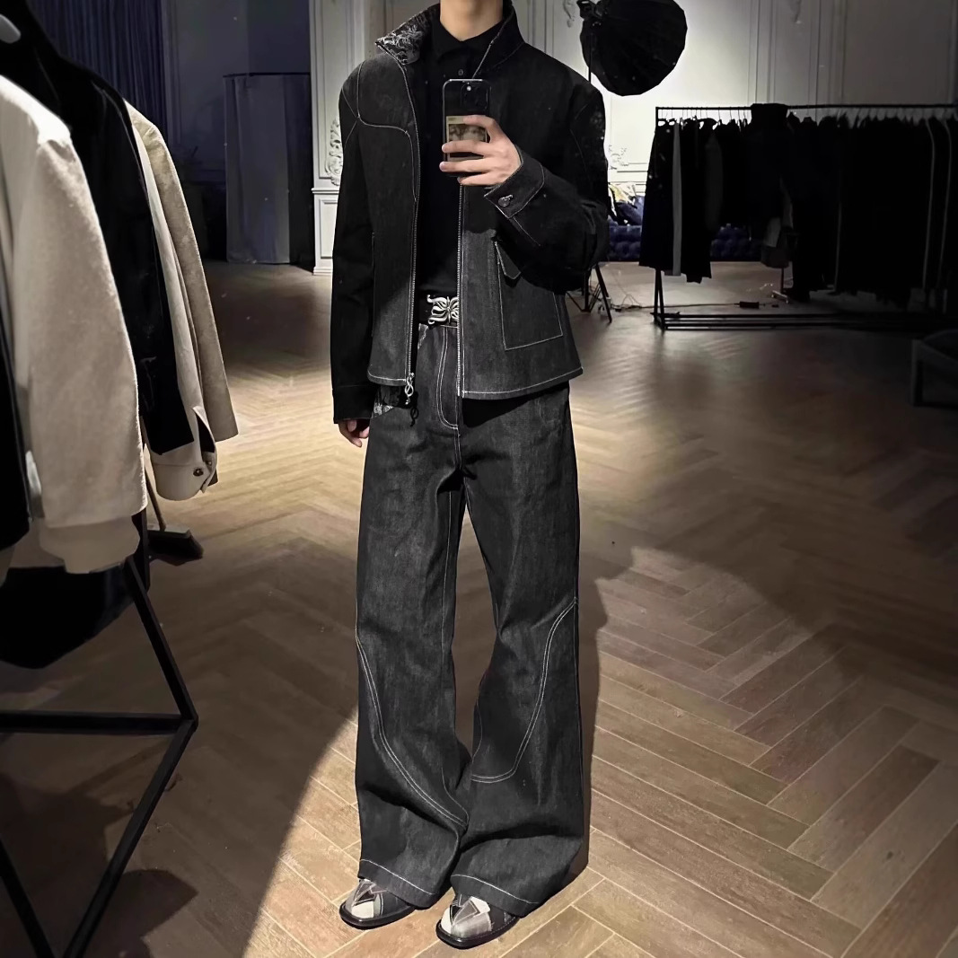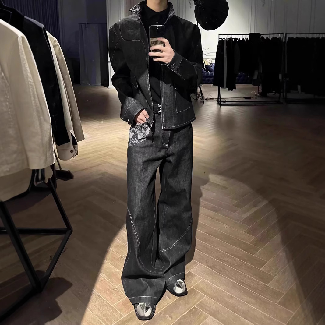 스네이크 트레일 오리지널 소 좁은 붉은 귀 불타는 꽃 자카드 스티칭 마이크로 핏 청바지 남성 스트레이트 루즈 캐주얼 긴 트렌디 바지