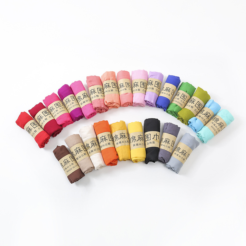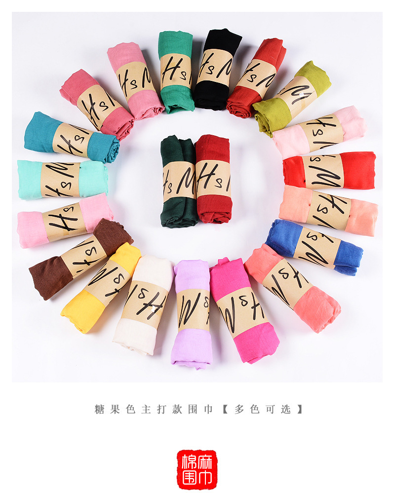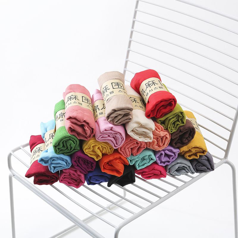 새로운 봄, 여름 면 및 린넨 스카프 비치 타월 여성 민족 스타일 캔디 컬러 주름 단색 순수한 색상 면 및 린넨 스카프 목도리스토어 가기
