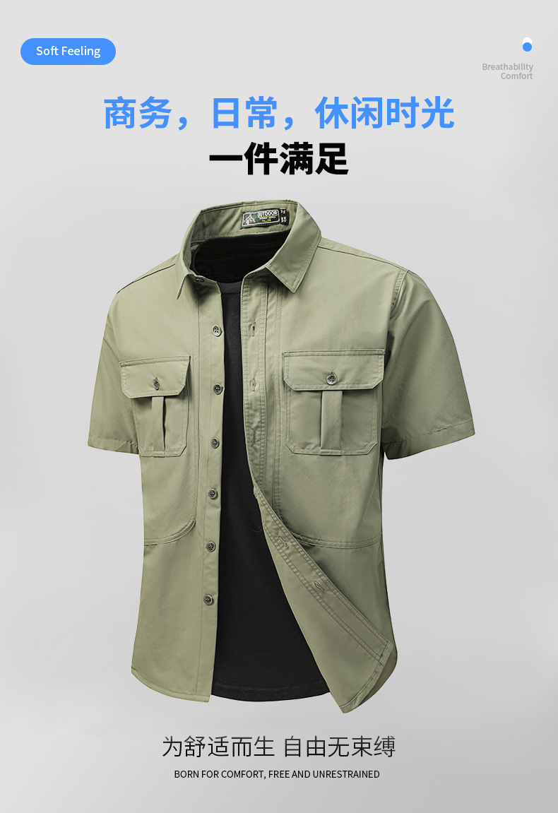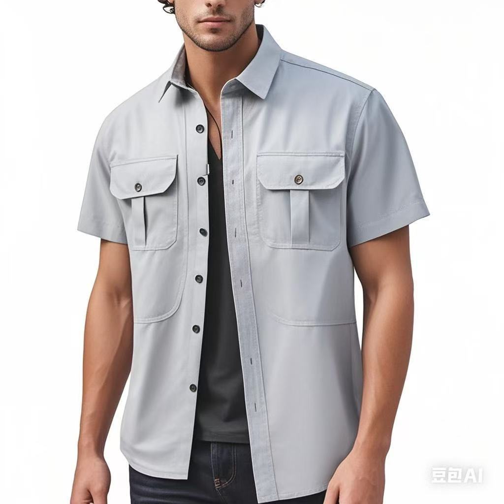 여름 신상품 속건 작업복 캐주얼 만능 반팔 셔츠 얇고 루즈한 남성용 반팔 아이스 실크