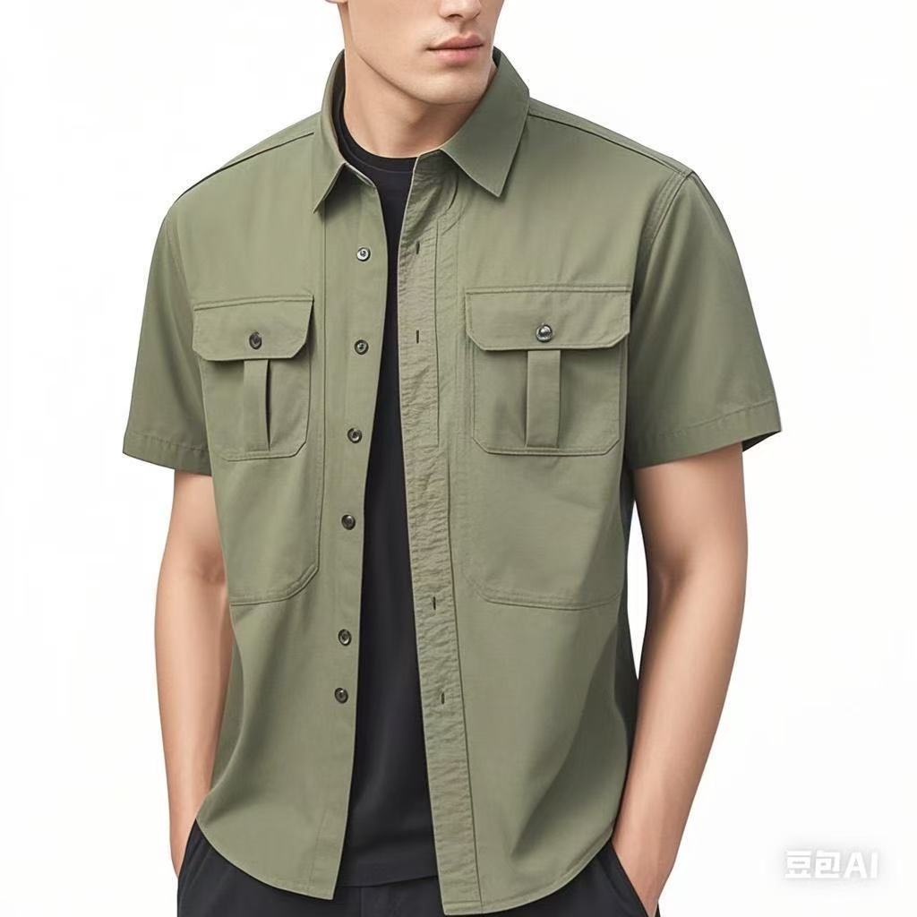 여름 신상품 속건 작업복 캐주얼 만능 반팔 셔츠 얇고 루즈한 남성용 반팔 아이스 실크스토어 가기