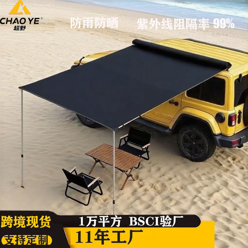차량용 사이드 텐트 3-5인용 캠핑 카키 블랙 글로시 접이식 이동식 차량 후면 차양 텐트
