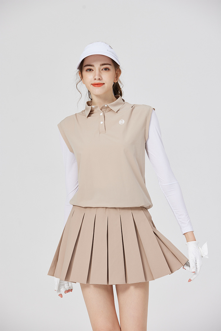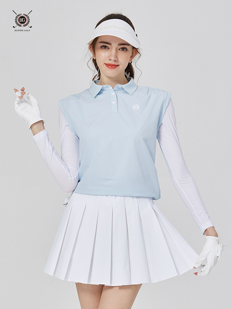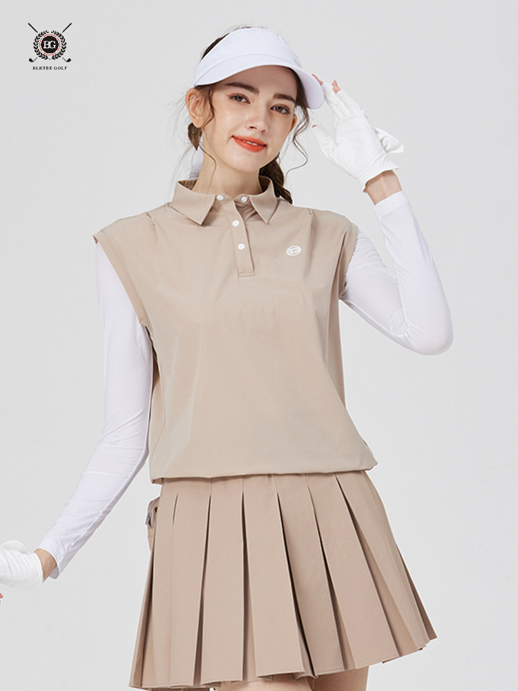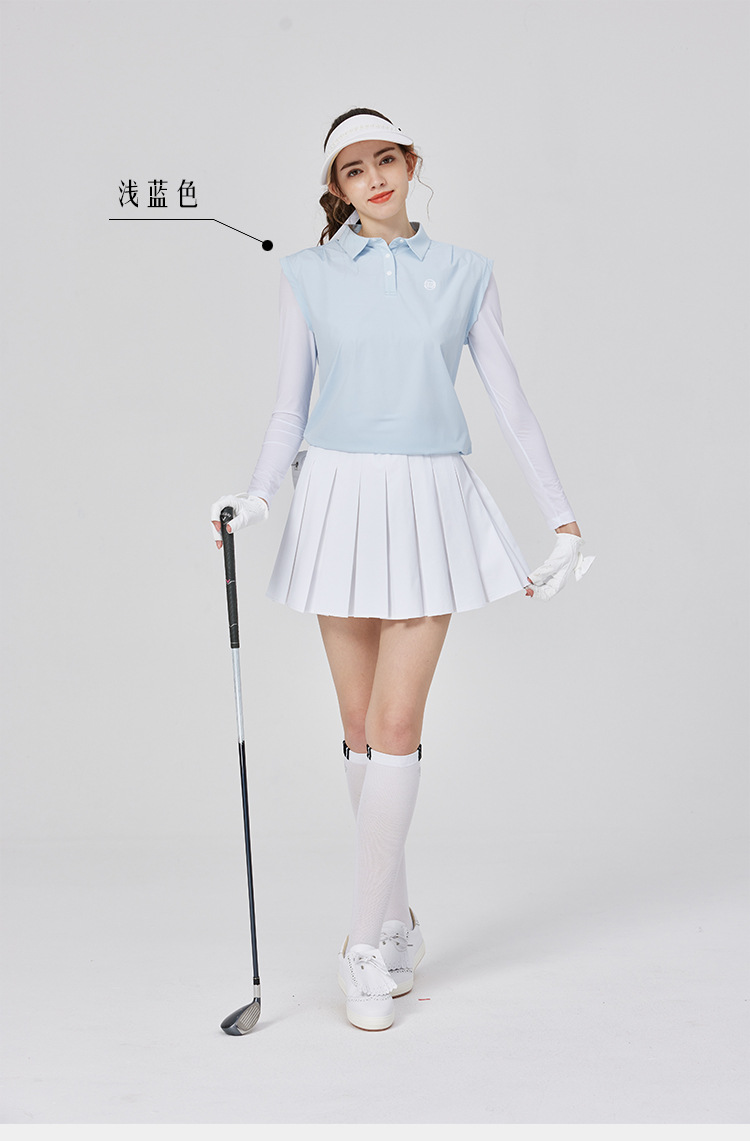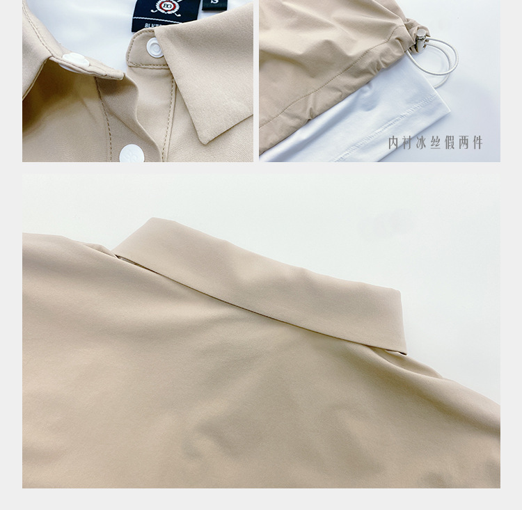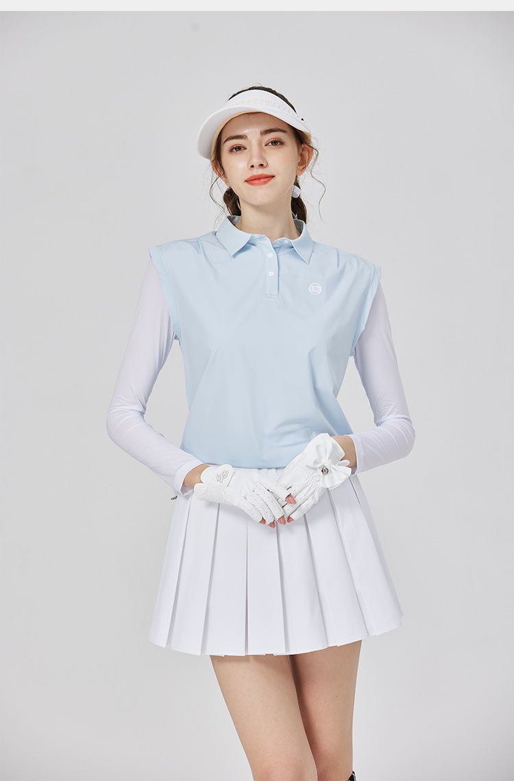 BG 골프 여자 여름 퀵 드라이 통기성 가짜 투피스 스포츠 선 스크린 아이스 실크 저지 세트 하프 하이 칼라