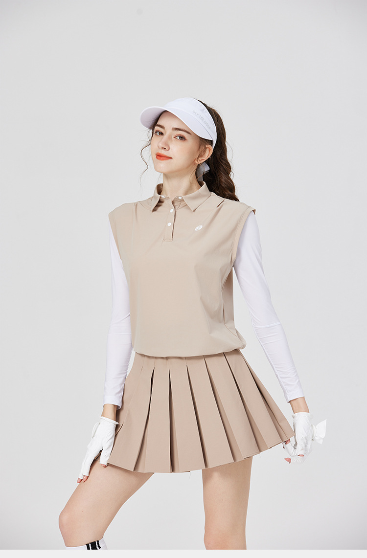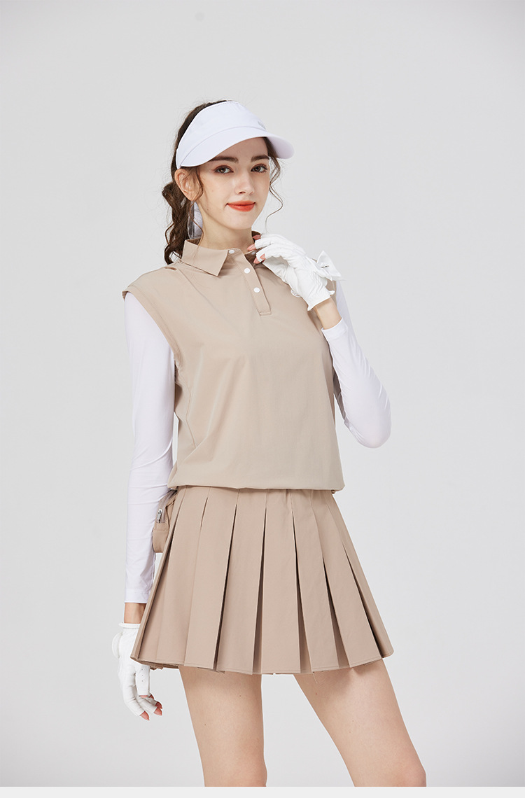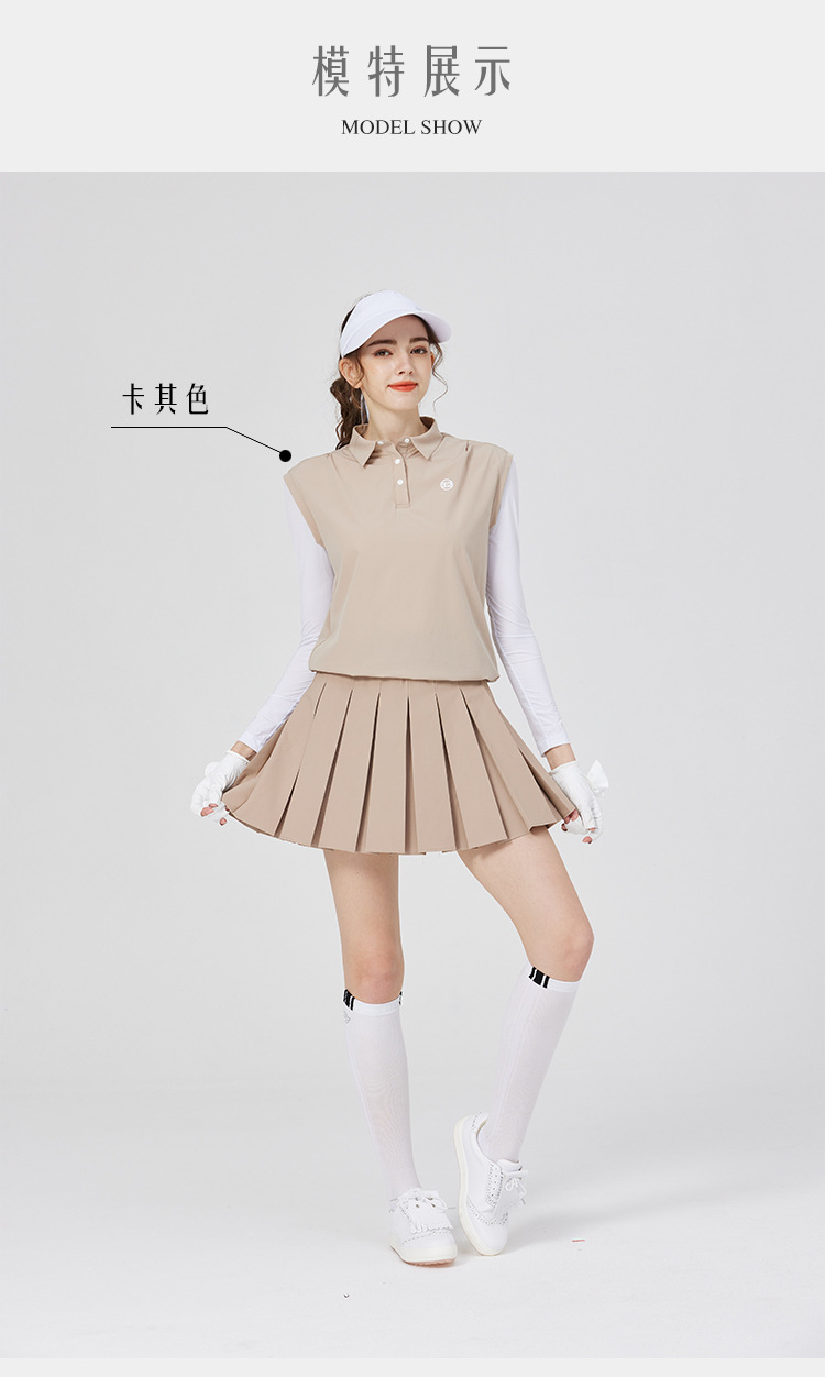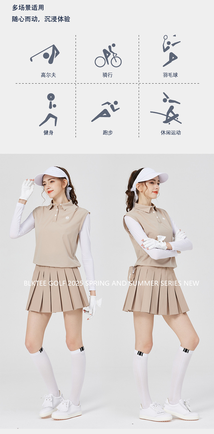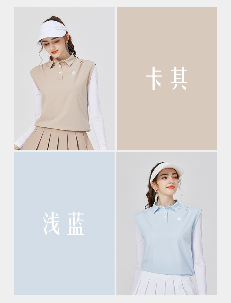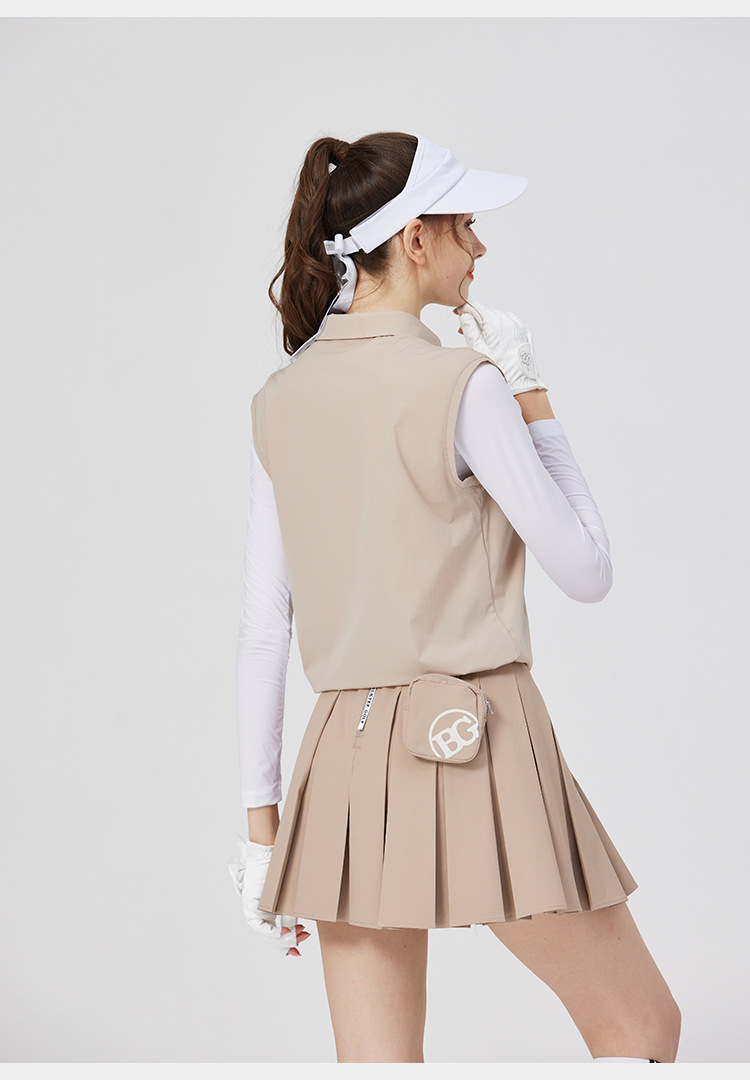 BG 골프 여자 여름 퀵 드라이 통기성 가짜 투피스 스포츠 선 스크린 아이스 실크 저지 세트 하프 하이 칼라