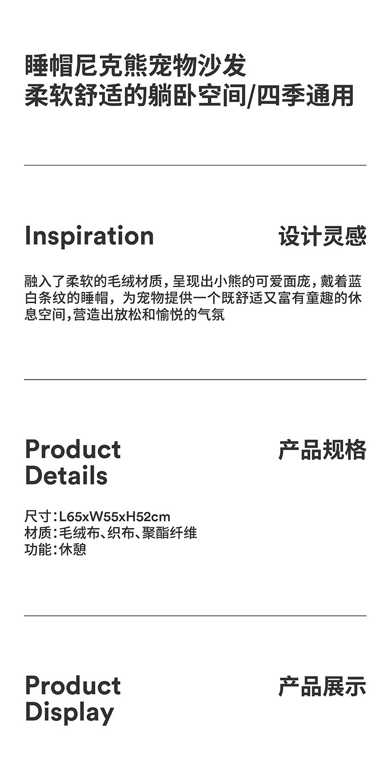 • 나이트캡 닉 베어 애완동물 소파
