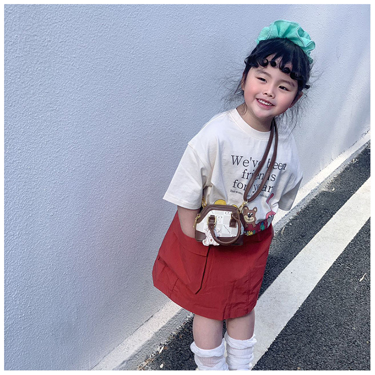 어린이 가방 2025 새로운 귀여운 곰 바느질 컬러 쉘 가방 소녀 아기 액세서리 어깨 크로스 백