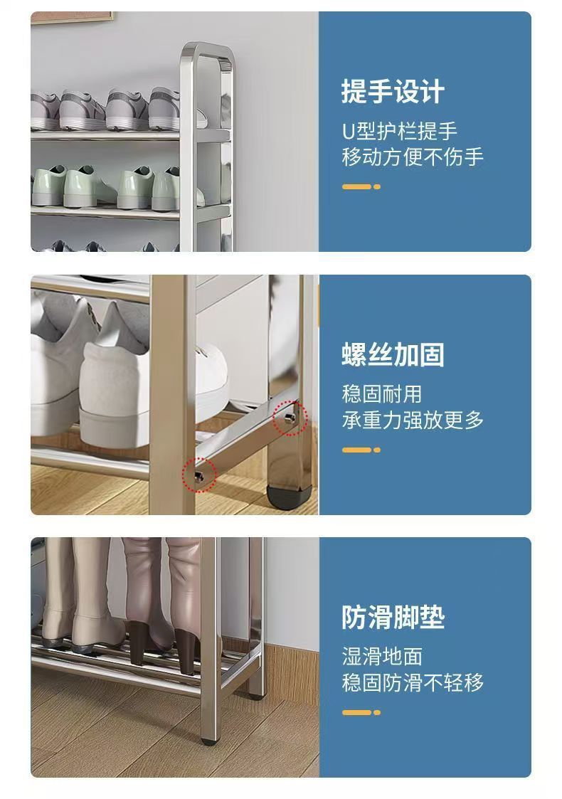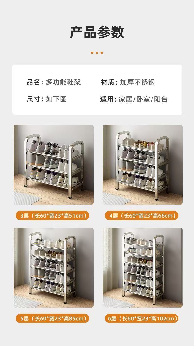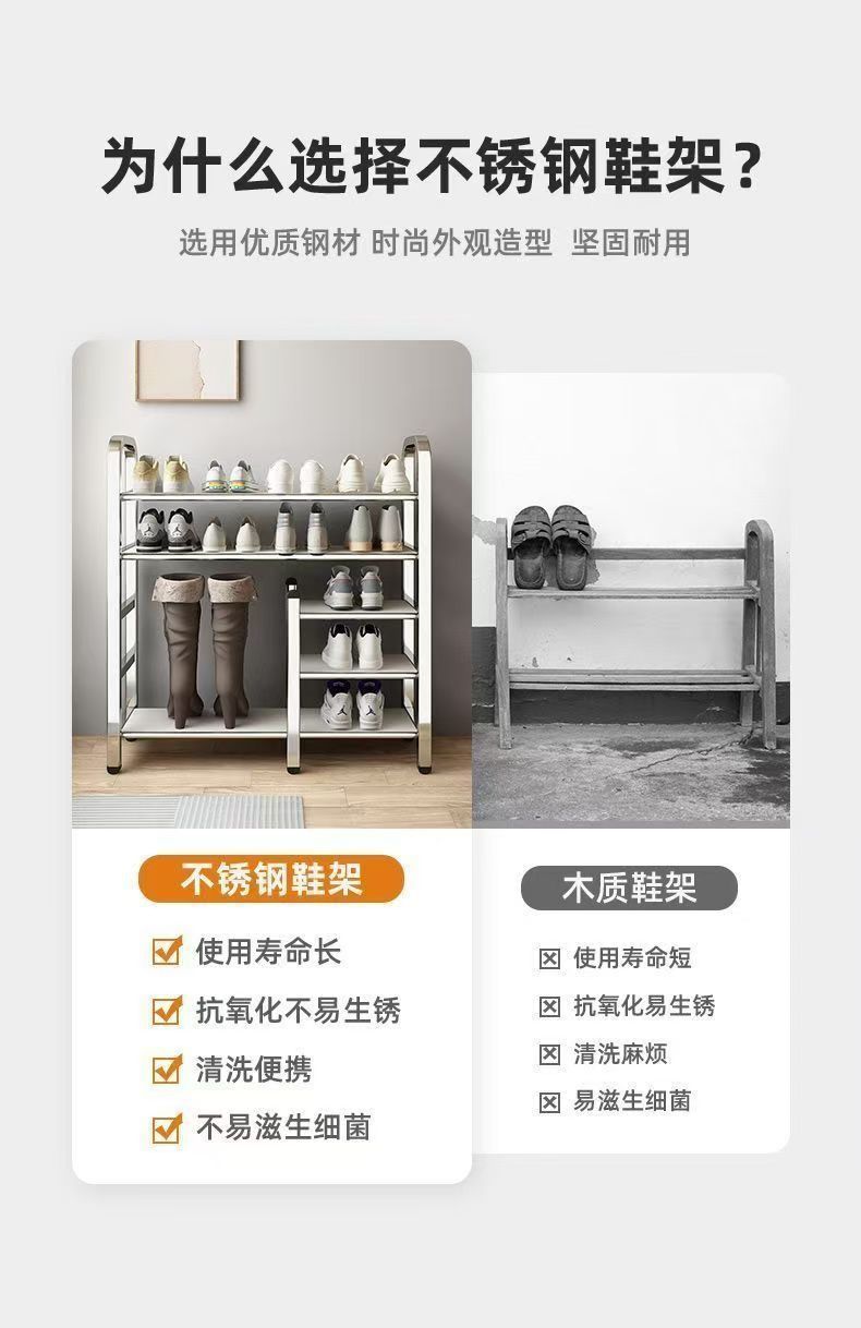 가정용 스테인레스 스틸 신발 랙 다층 간단한 조합 신발 랙 기숙사 보관 두꺼운 강화 스테인레스 스틸 신발 랙