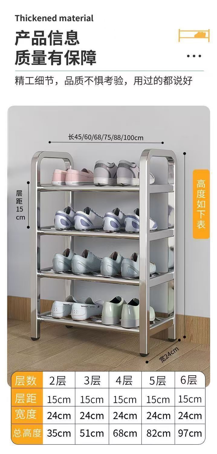가정용 스테인레스 스틸 신발 랙 다층 간단한 조합 신발 랙 기숙사 보관 두꺼운 강화 스테인레스 스틸 신발 랙스토어 가기