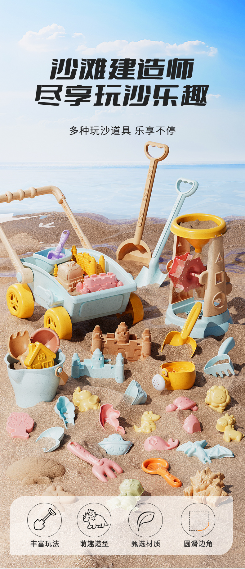 국경 간 어린이 야외 해변 모래 놀이 도구 아기 해변 물 파고 모래 삽 장난감 마구간 도매스토어 가기