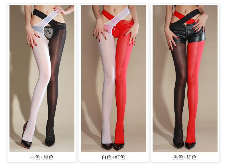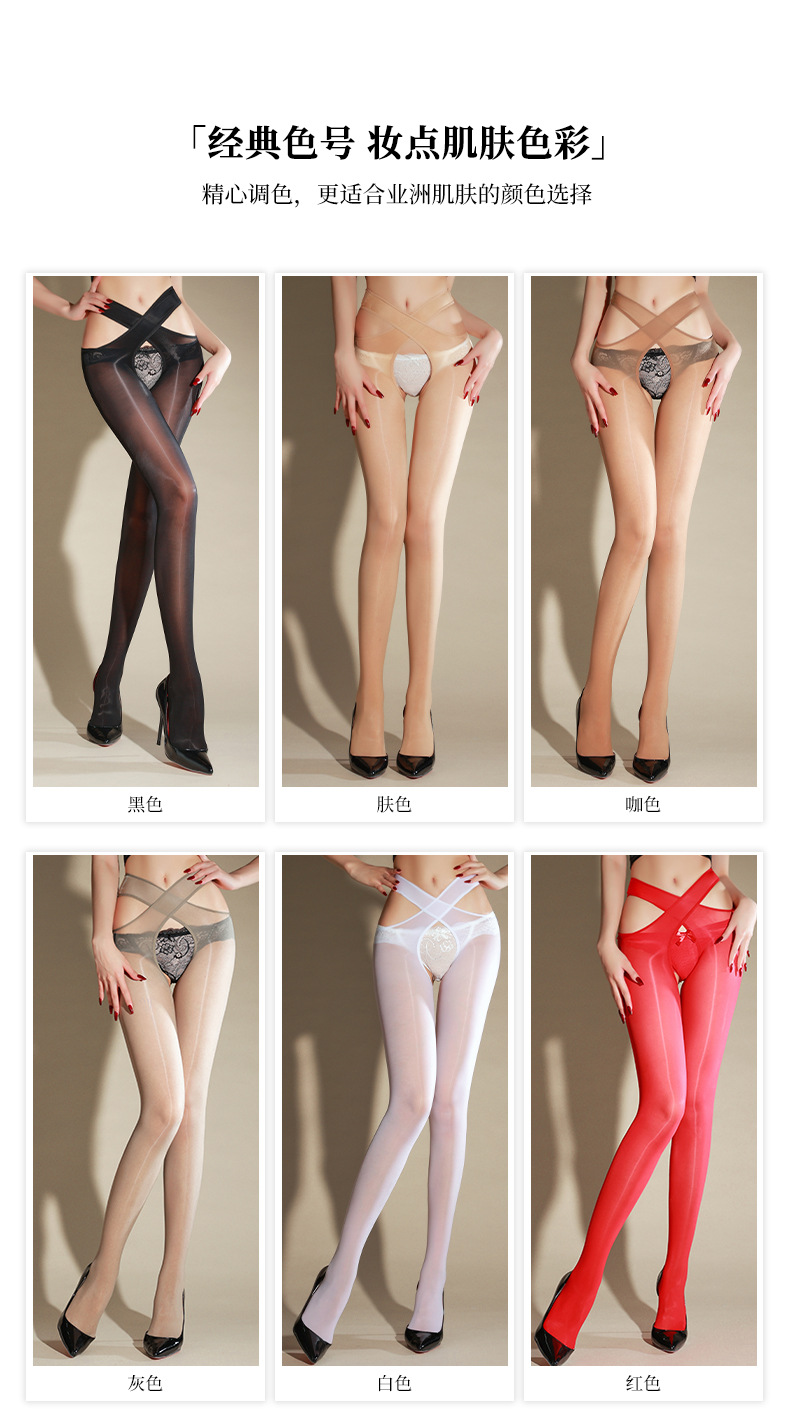 8D 초박형 말기름 양말 크로스 스타일 싱글 섹시 오픈 가랑이 유광 스타킹 유광 실크 블랙 실크 팬티 스타킹