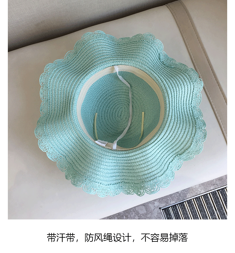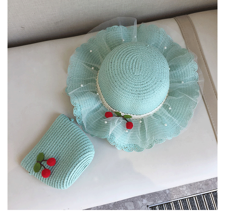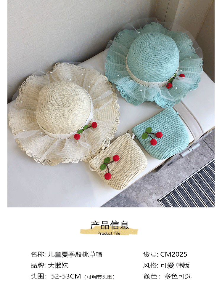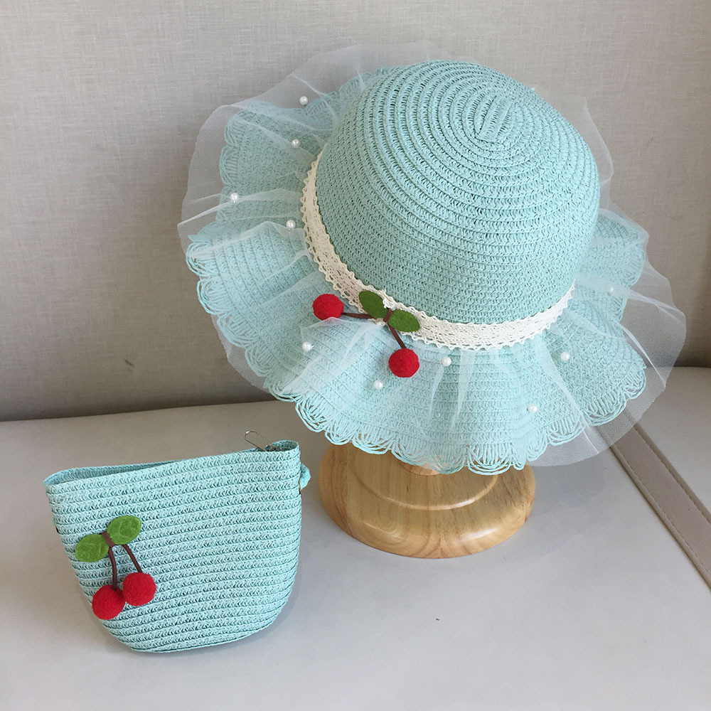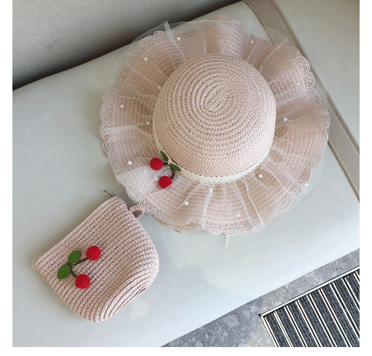 2025 여름 해변 여행 어린이 밀짚 모자 큰 챙 태양 모자 간단한 레이스 체리 밀짚 모자 제조 업체