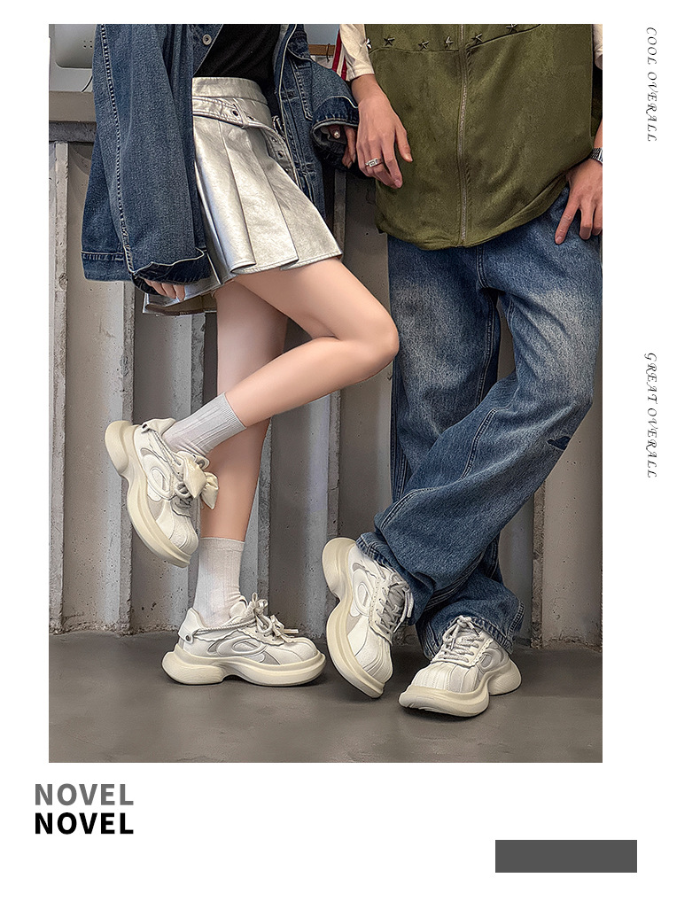 2025 봄 새로운 패션 두꺼운 밑창 높이 증가 캐주얼 신발 남성과 여성 같은 스타일 간단한 커플 신발 유행 다목적 남성 신발스토어 가기