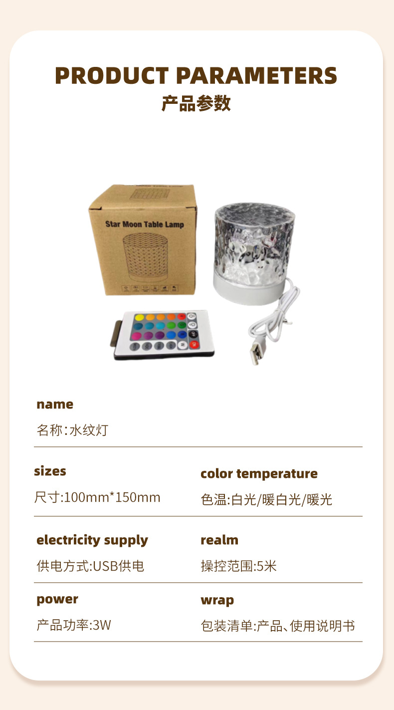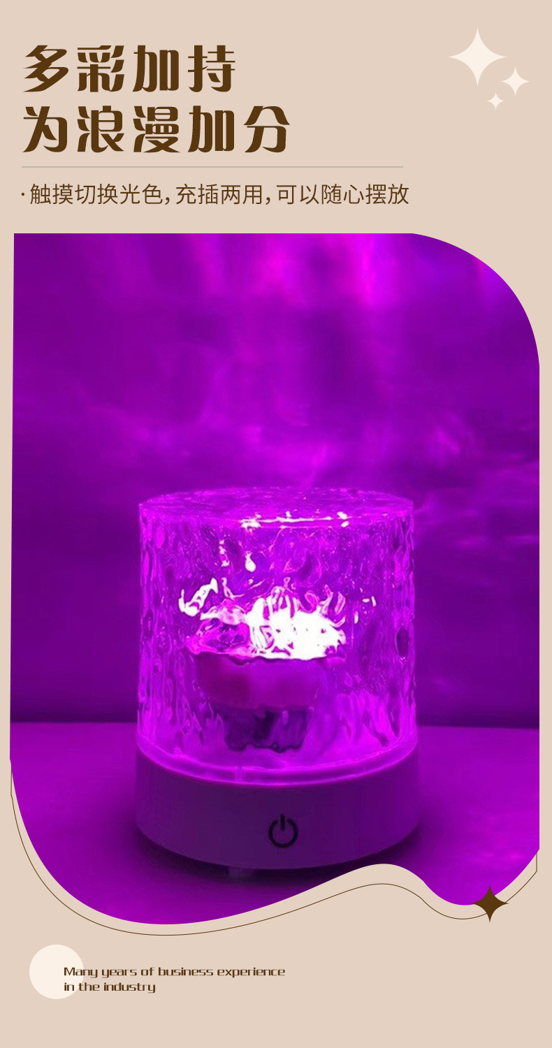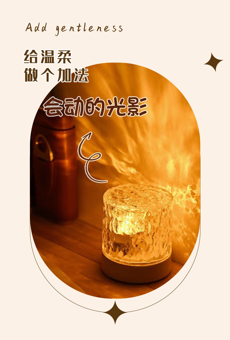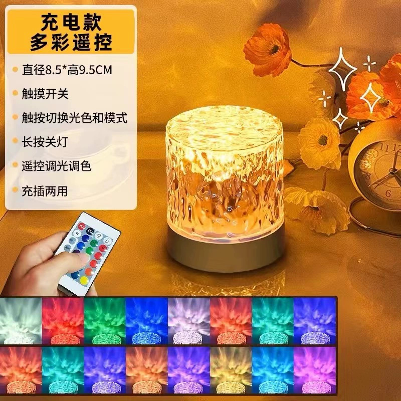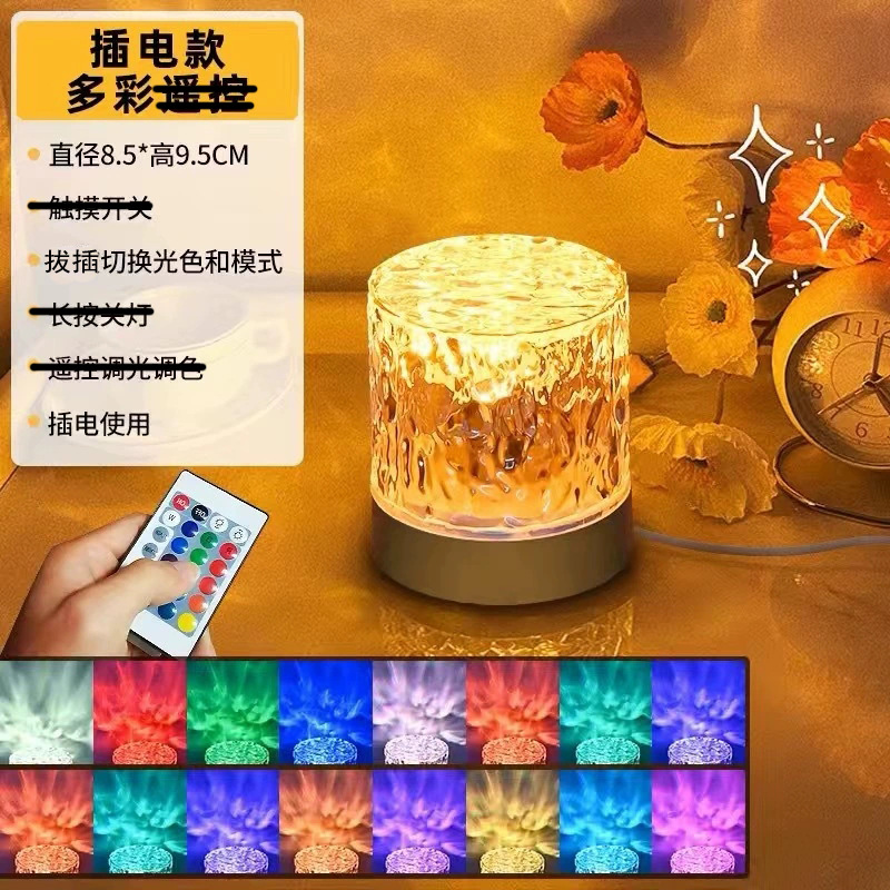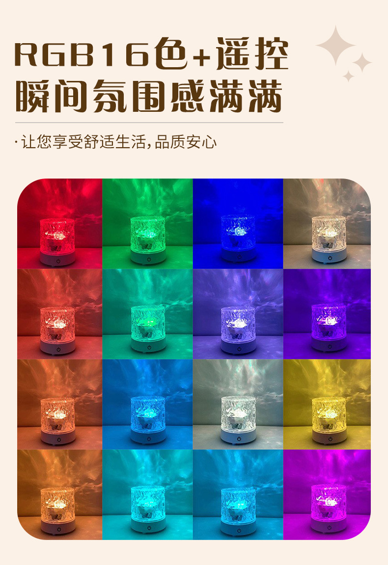 원통형 침실 머리맡 LED 야간 조명 낭만적 인 빛과 그림자 기능 동적 물 리플 분위기 조명 16 색 원격 제어 가능