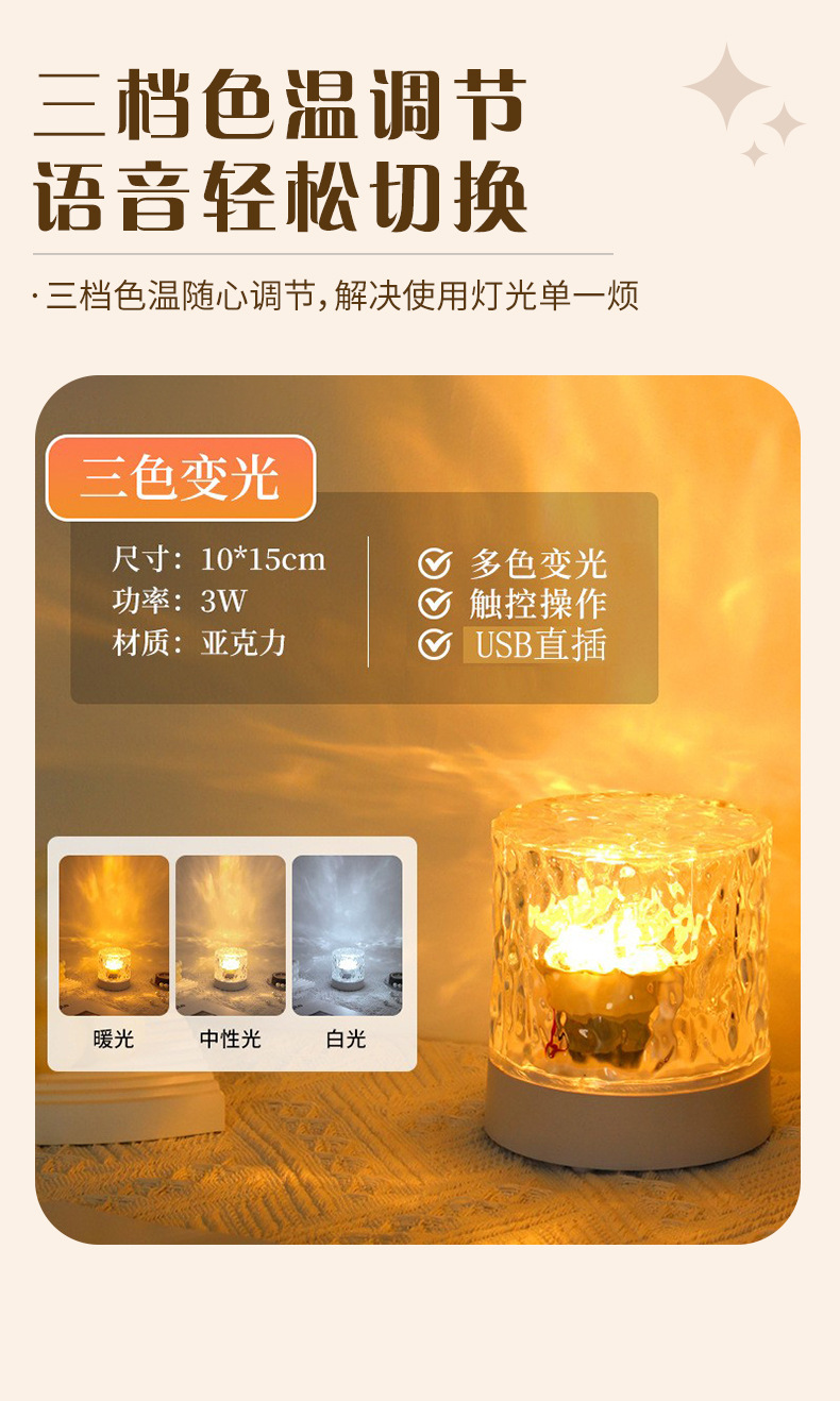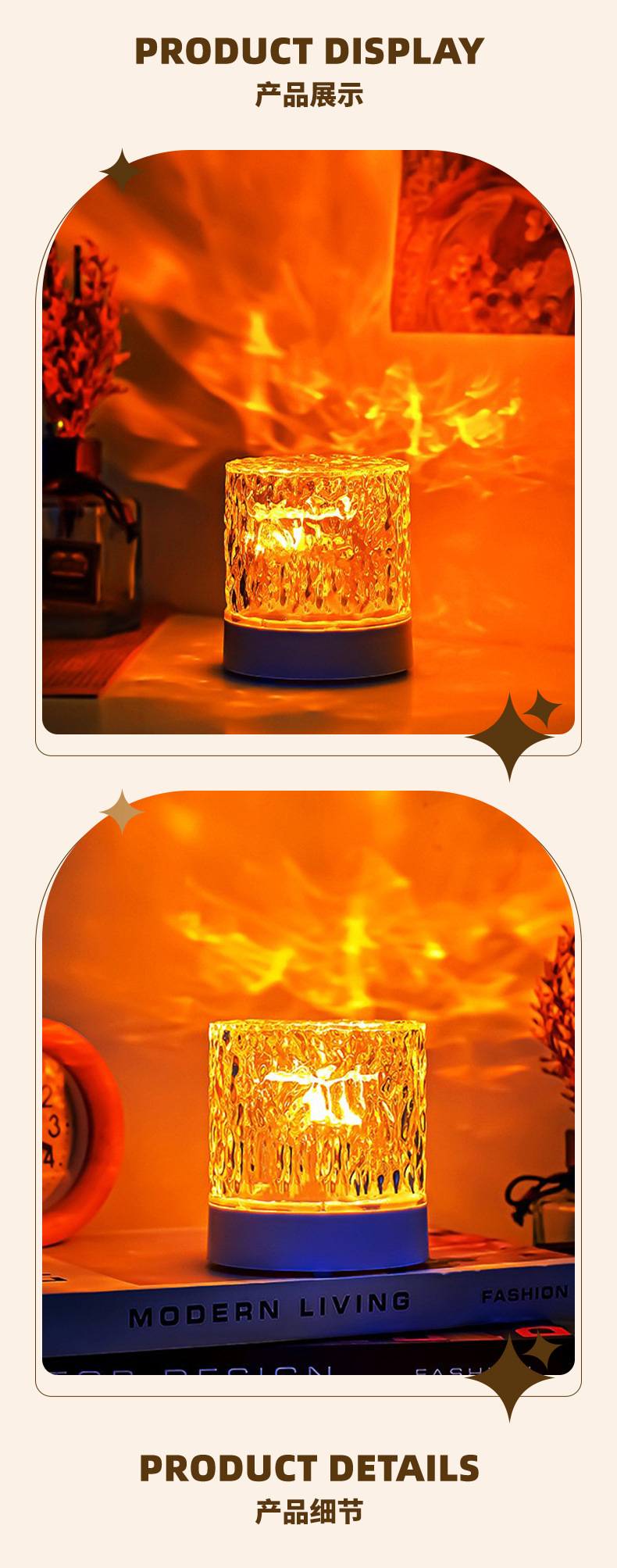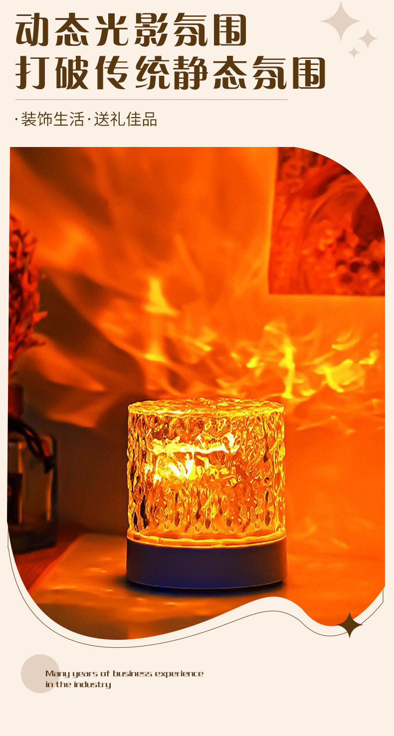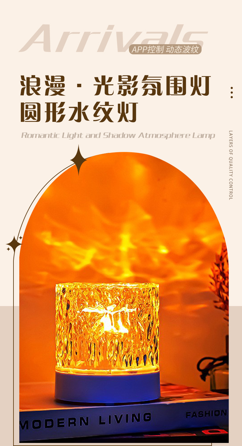 원통형 침실 머리맡 LED 야간 조명 낭만적 인 빛과 그림자 기능 동적 물 리플 분위기 조명 16 색 원격 제어 가능