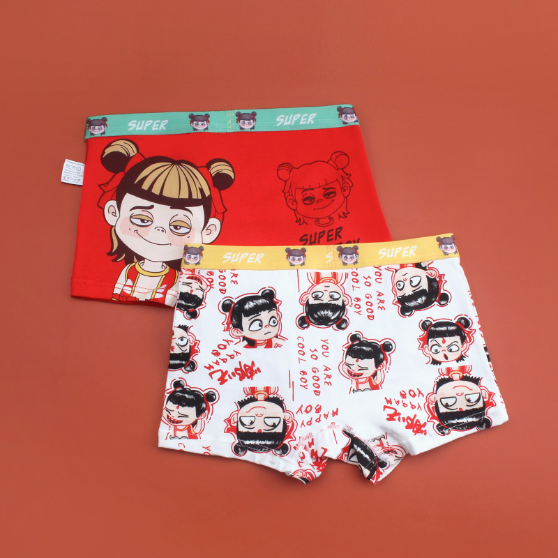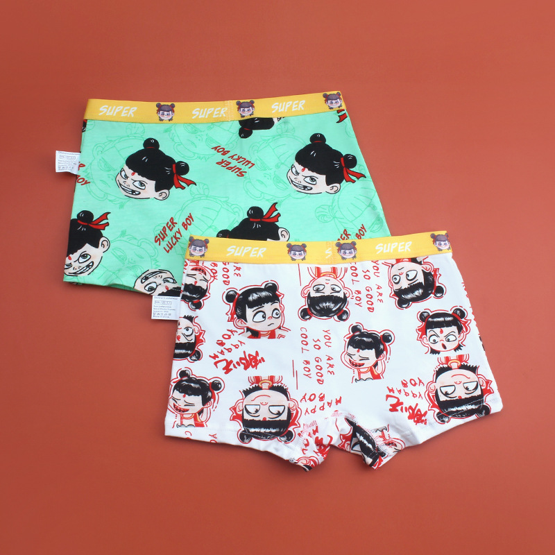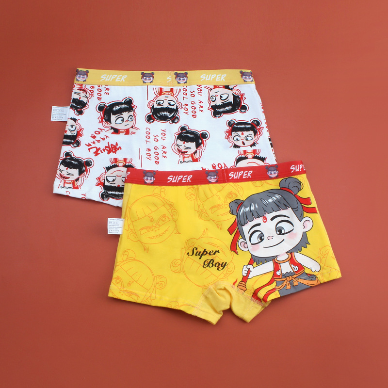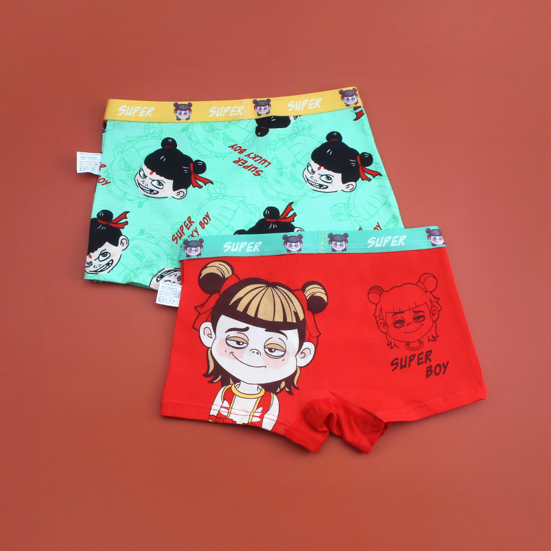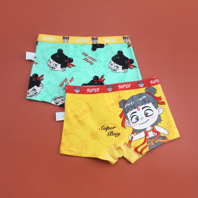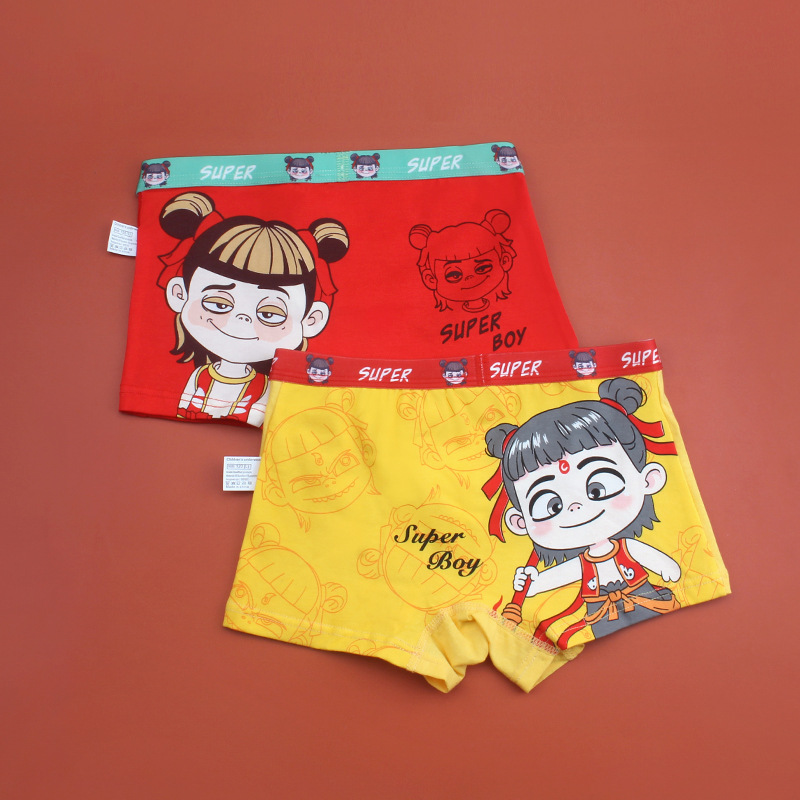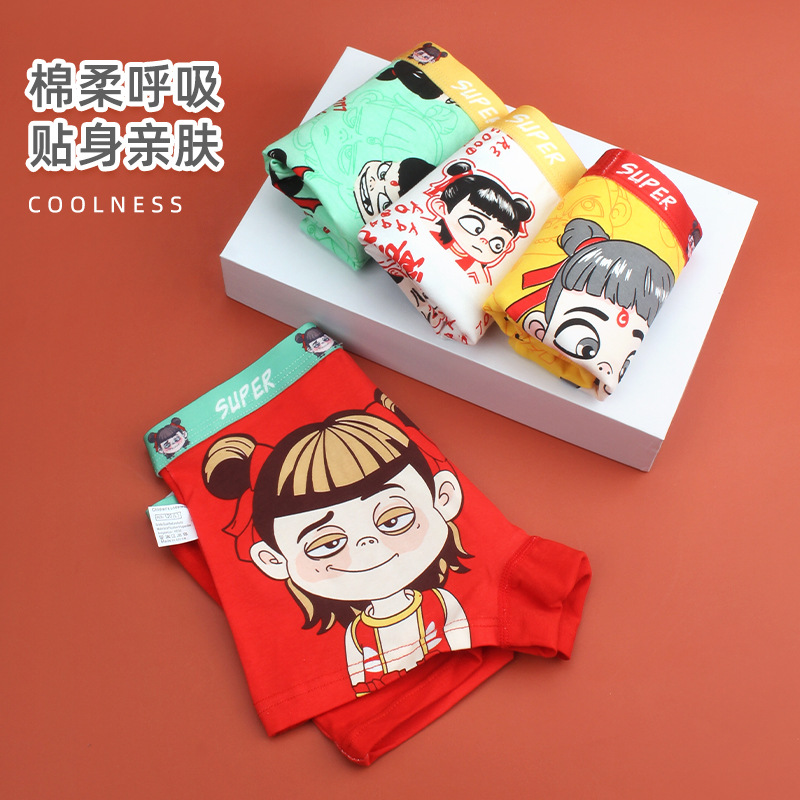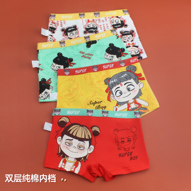 Nezha 새로운 어린이 속옷 소년 면화 복서 작은 소년 cuhk 반바지 4 코너 만화 배치