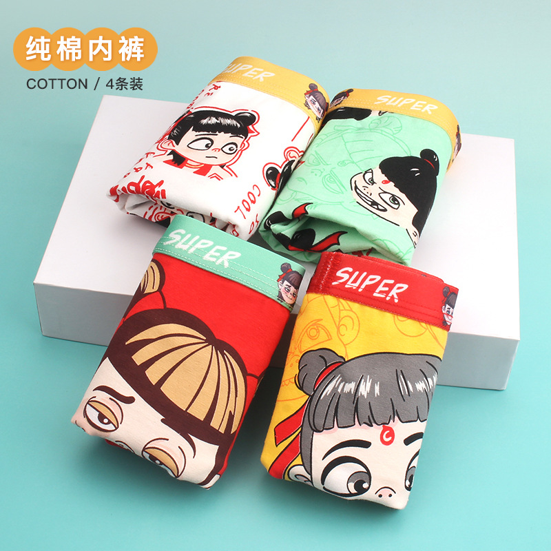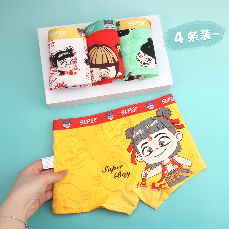 Nezha 새로운 어린이 속옷 소년 면화 복서 작은 소년 cuhk 반바지 4 코너 만화 배치스토어 가기