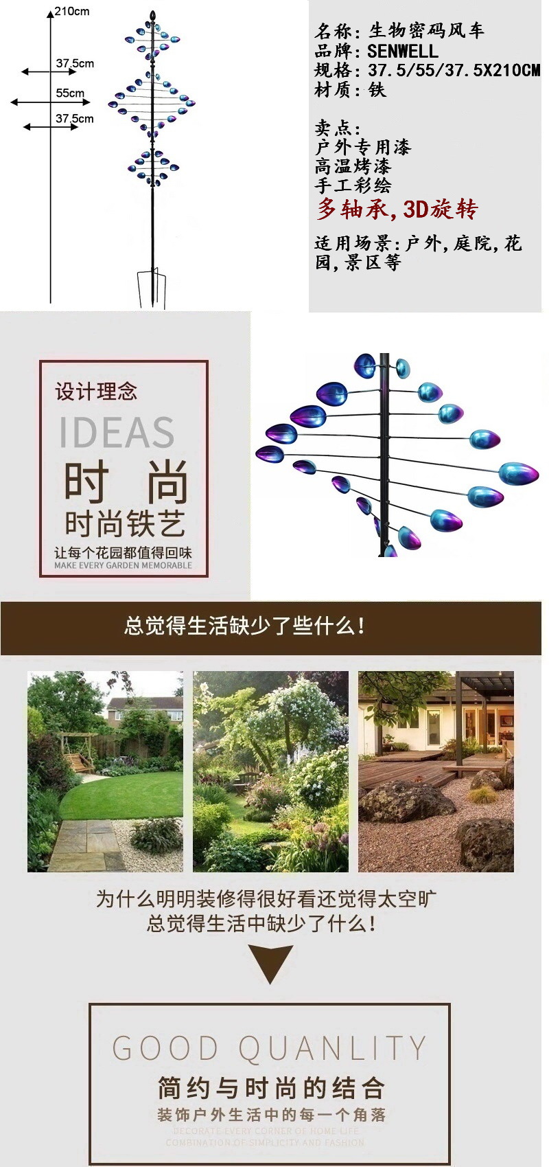 야외 안뜰 창조적 인 장식 다채로운 철 풍차 자연 바람 회전 기하학적 생물학적 코드 모양 정원 장식품스토어 가기