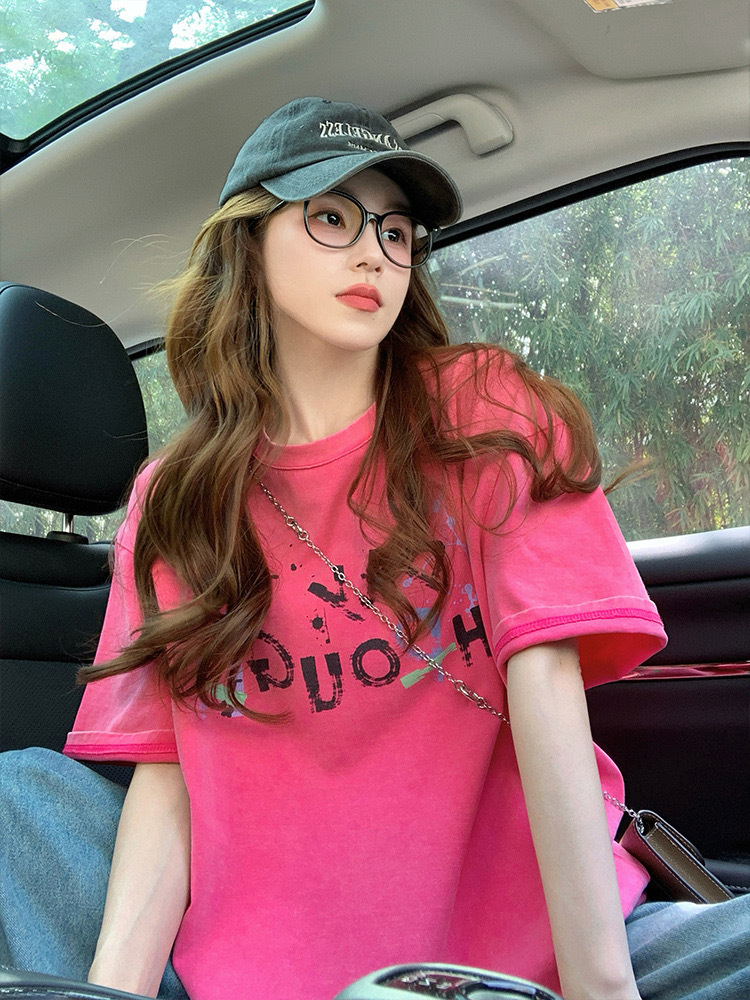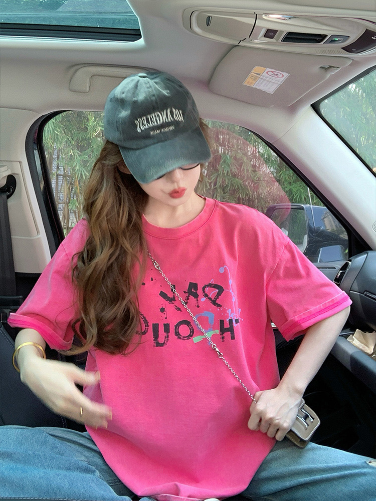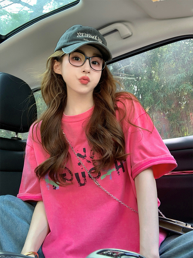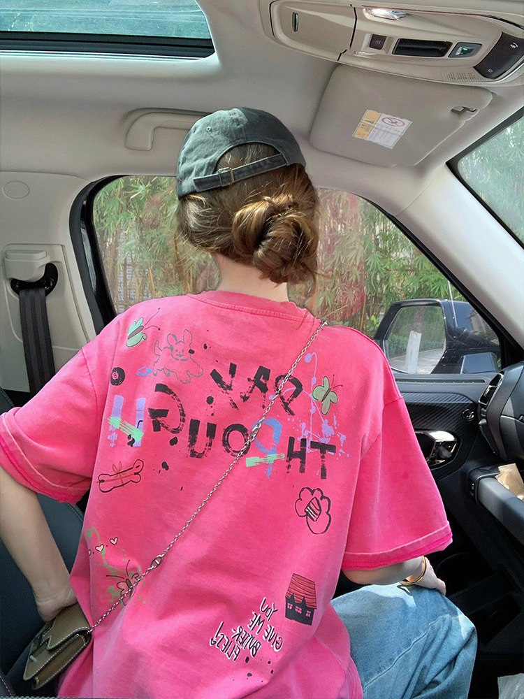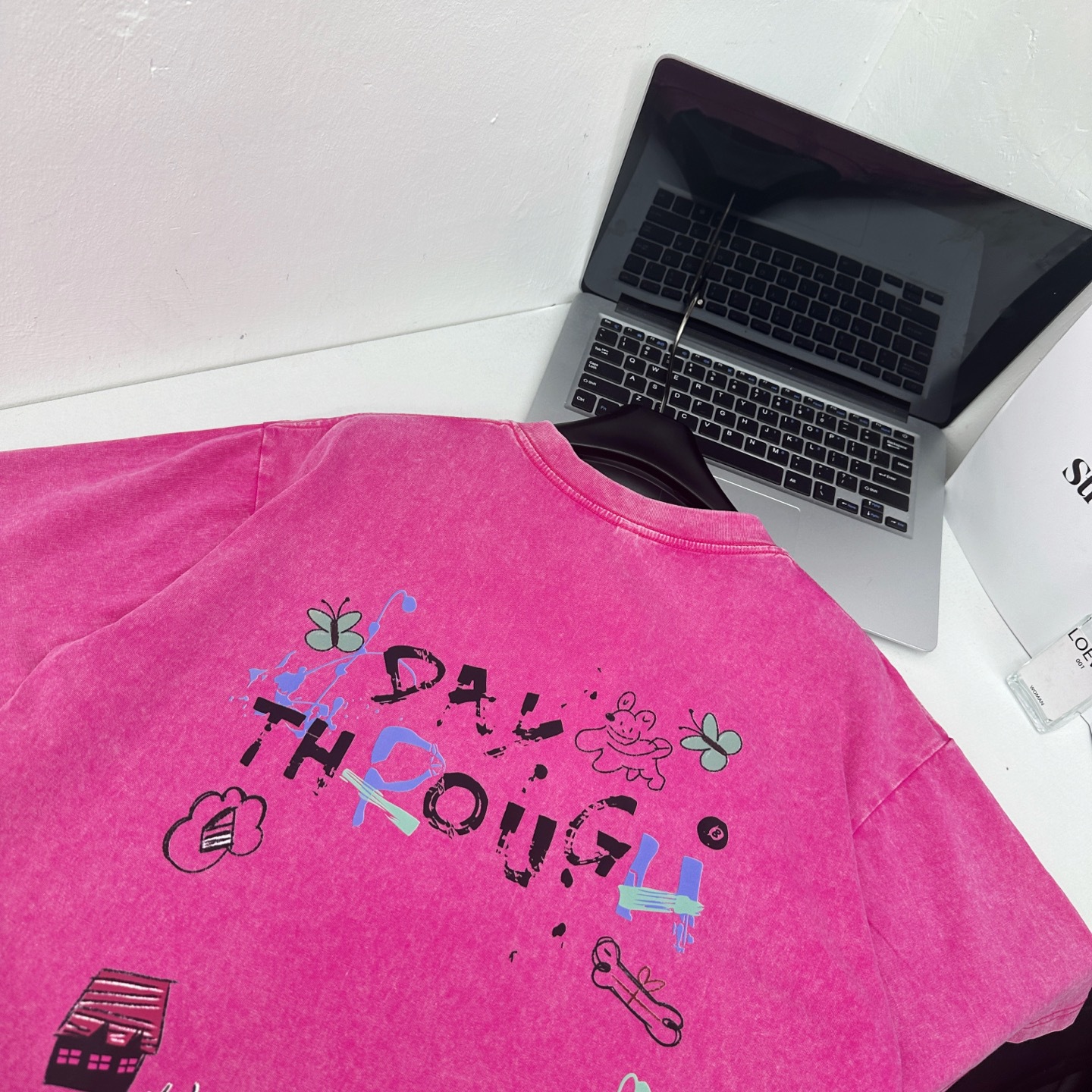 ▫️ 水洗玫红 —— 像打翻的果汁软糖,字母在衣角融化,甜酷碰撞出超吸睛的「艺术感脏染」!