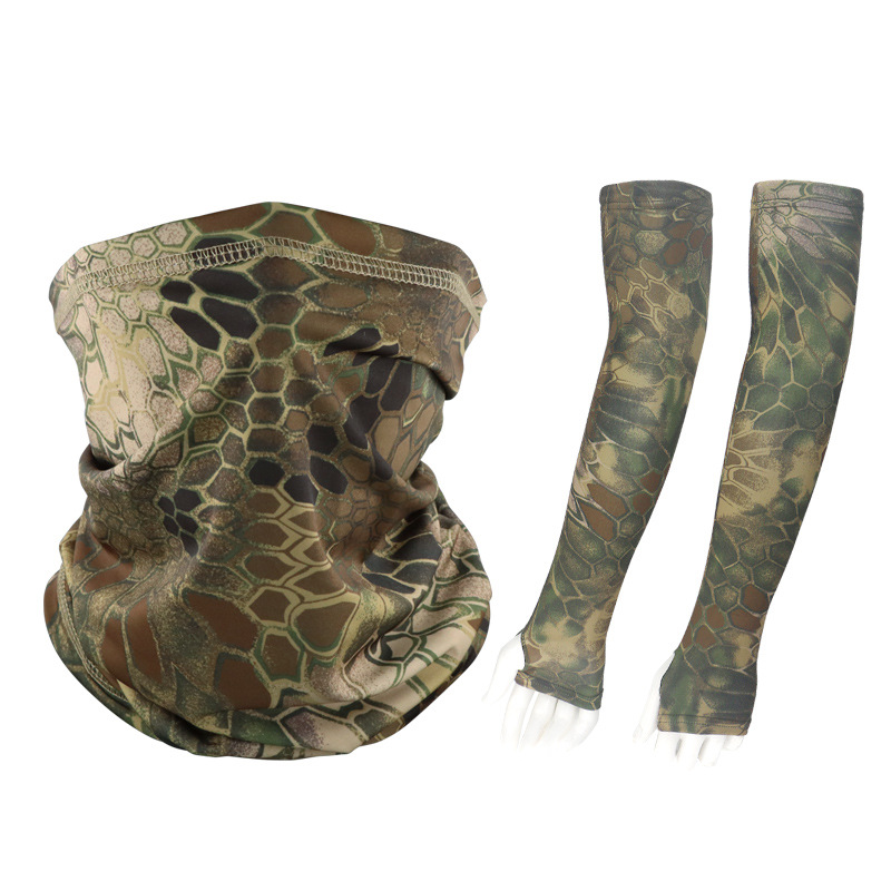 여름 얼음 실크 스카프 위장 야외 태양 보호 얼음 슬리브 세트 양면 목 커버 절연 차양 슬리브
