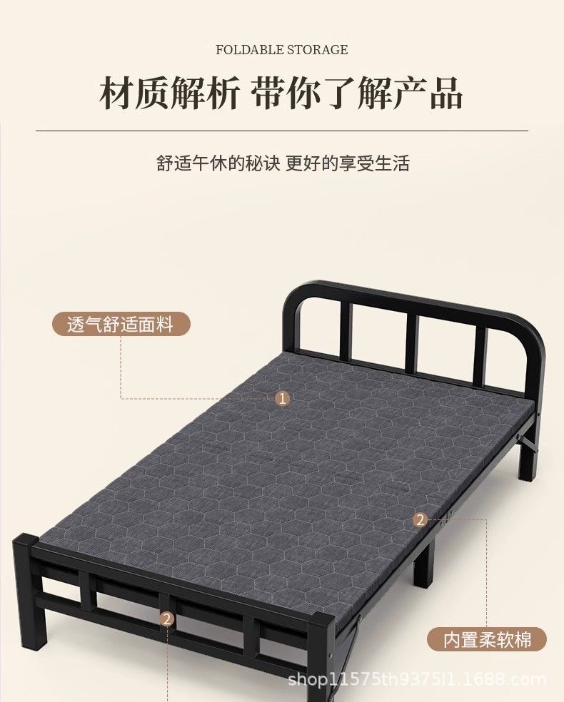 강화 접이식 싱글 침대 점심 휴식을위한 간단한 나무 침대 사무실 가구 더블 하드 침대 임대 룸 성인 철 침대스토어 가기