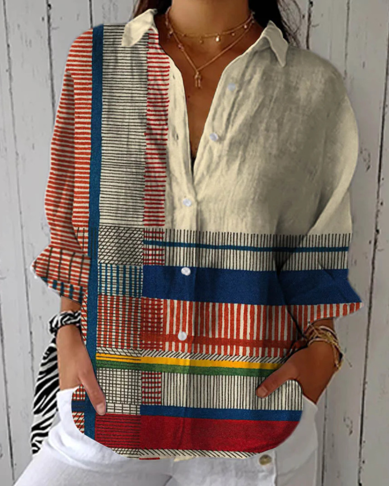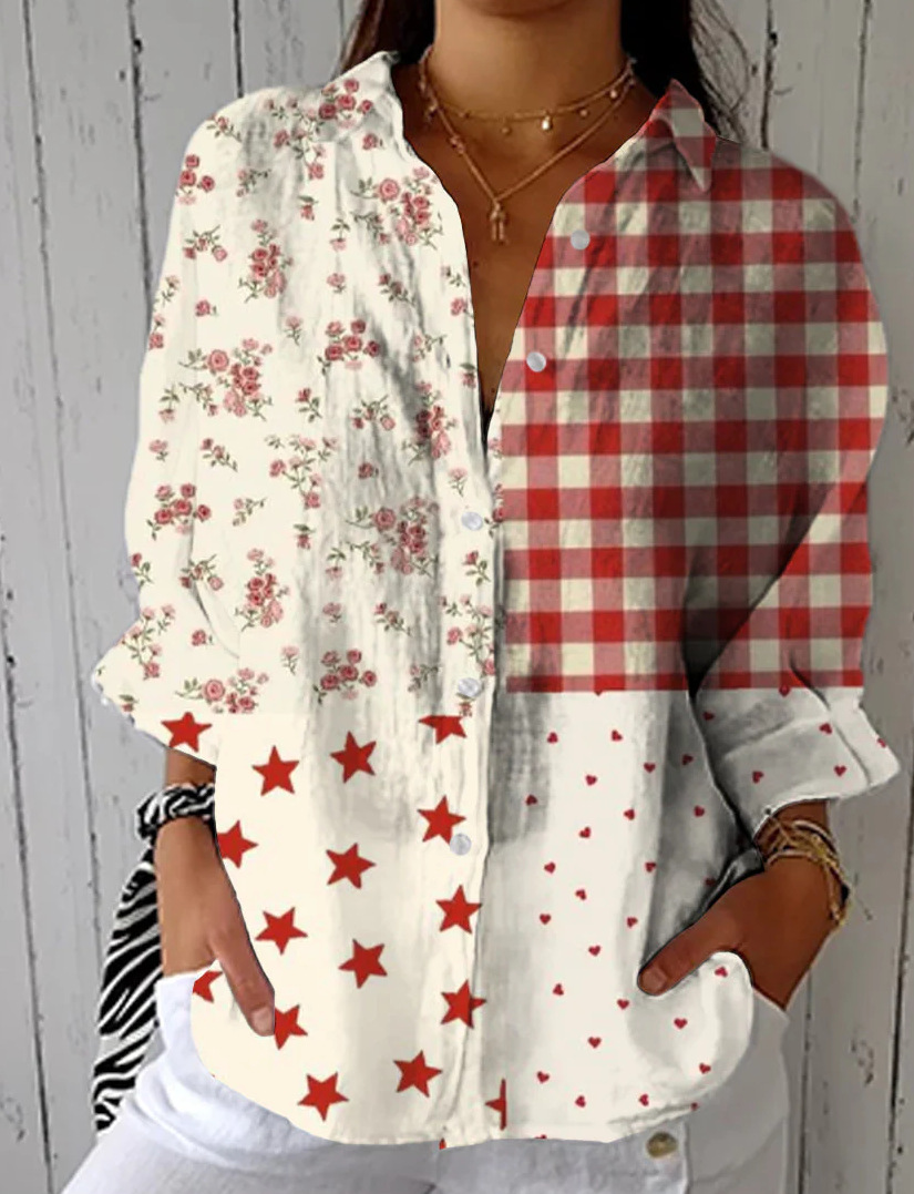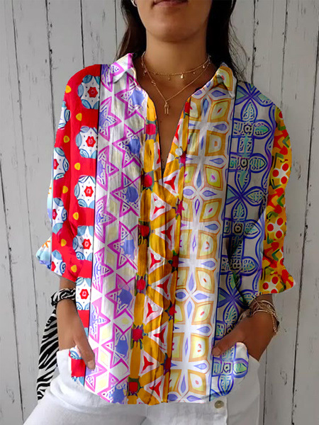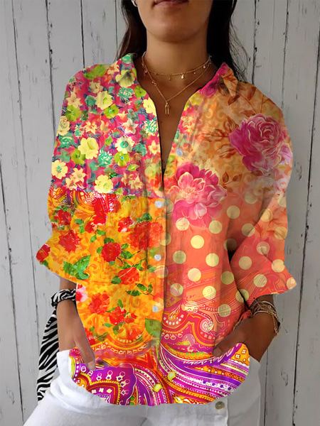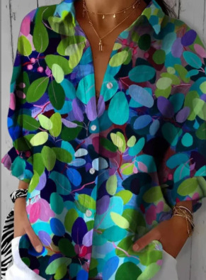 아마존 봄과 여름 새로운 3D 인쇄 옷깃 캐주얼 셔츠 여성 창조적 인 패션 꽃 꽃 셔츠