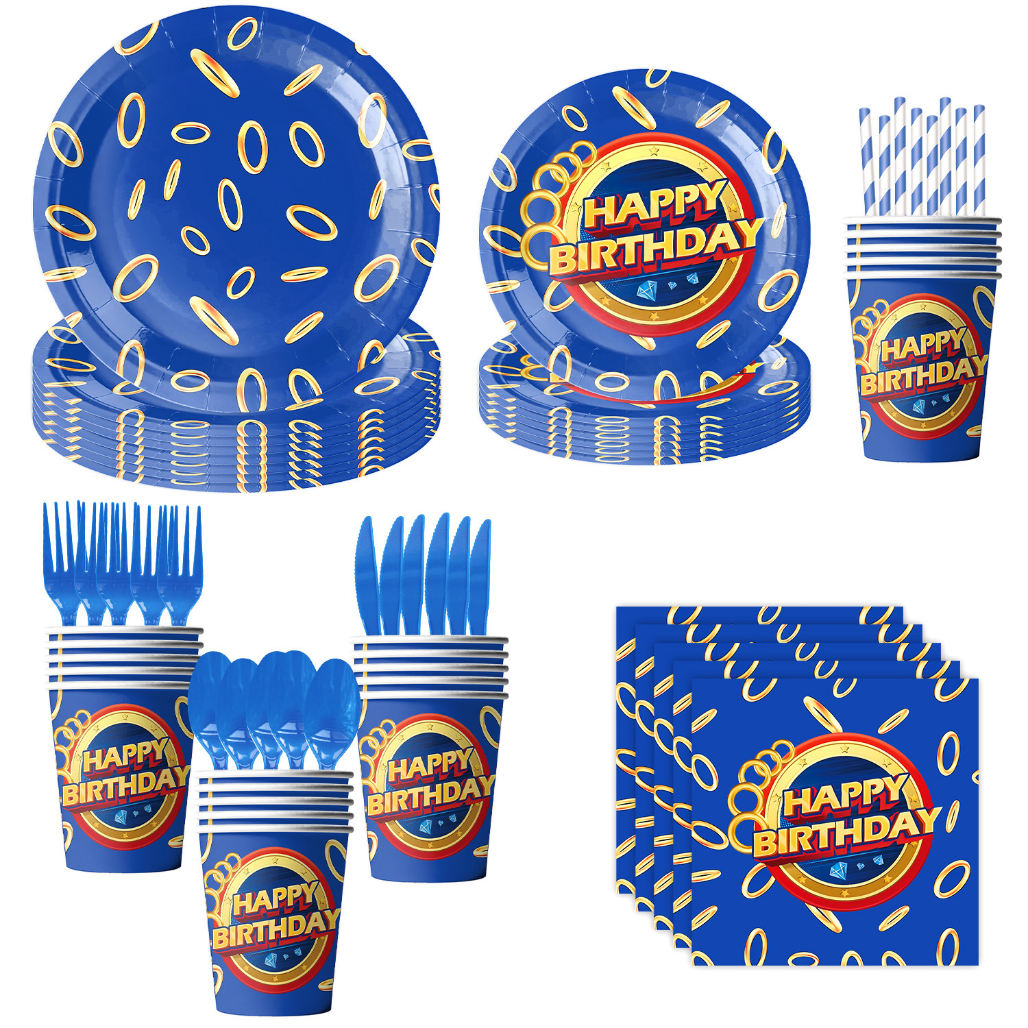 아마존 새로운 블루 애니메이션 시리즈 테마 생일 파티 용품 식기 종이 트레이 종이 컵 장식 세트스토어 가기