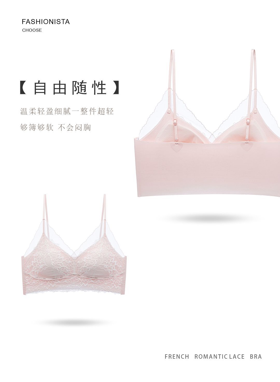 가슴이 작은 여성용 프렌치 레이스 조끼 속옷, 푸쉬업 처짐 방지, 와이어 프리 메쉬 아름다운 등 브라