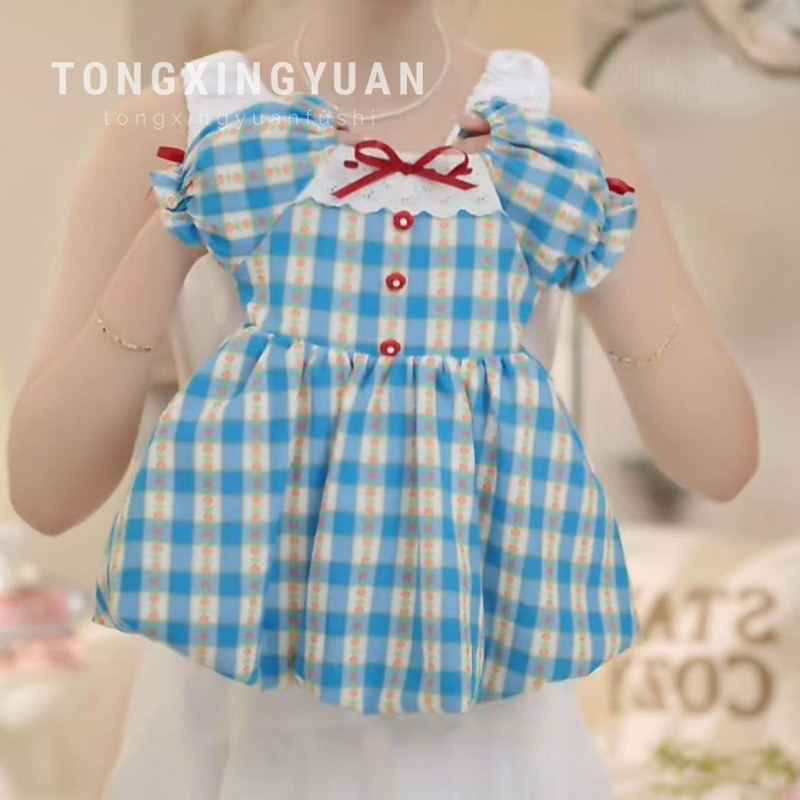 통 싱위안 한국 스타일 아동복 새로운 여름 소녀 격자 무늬 원피스 소녀 아기 소녀 스타일러스 베살 원피스 공주 치마스토어 가기
