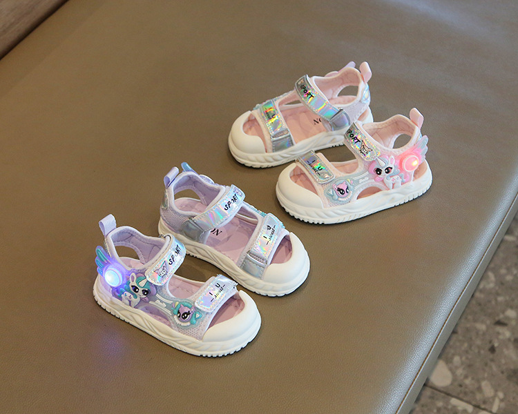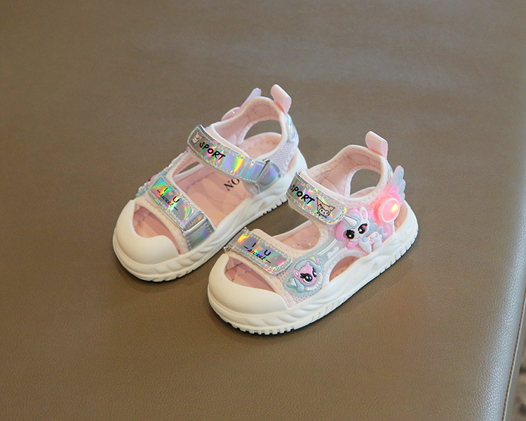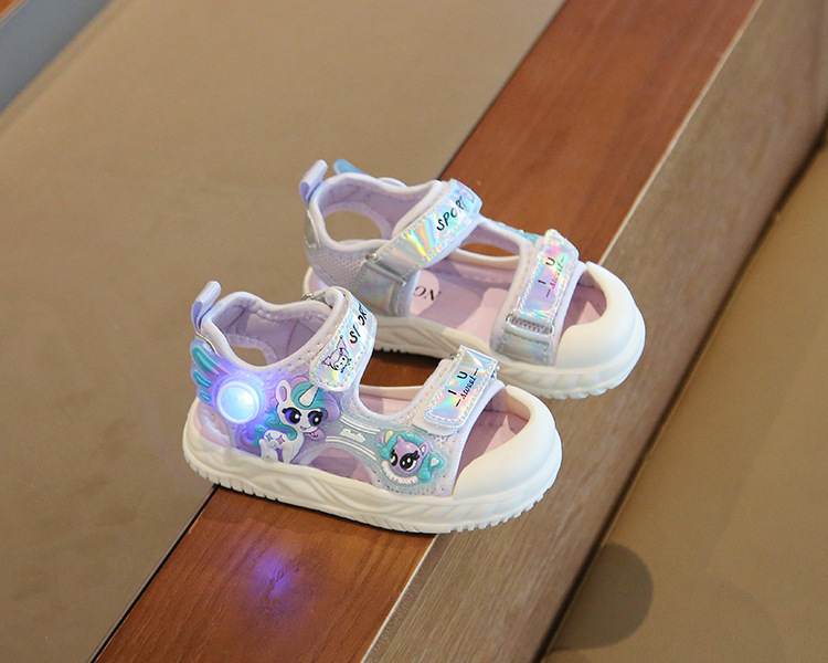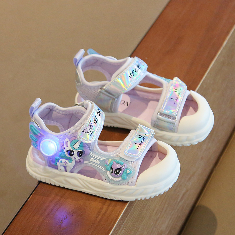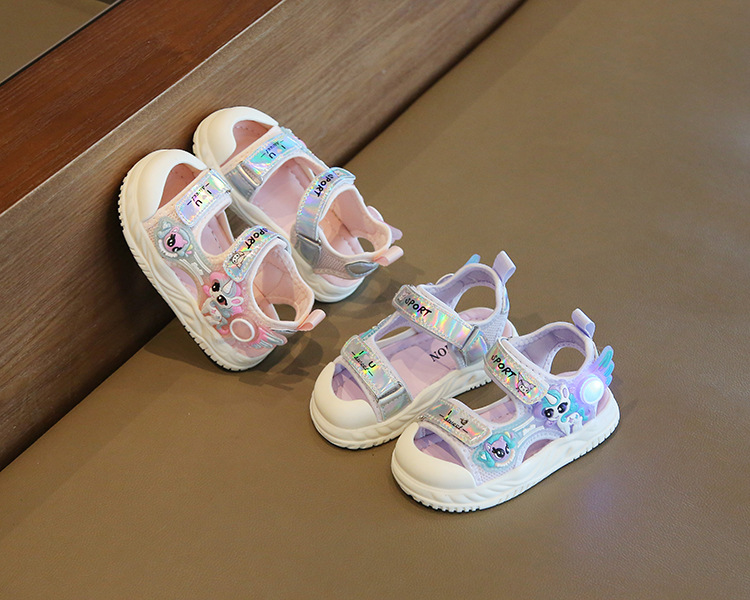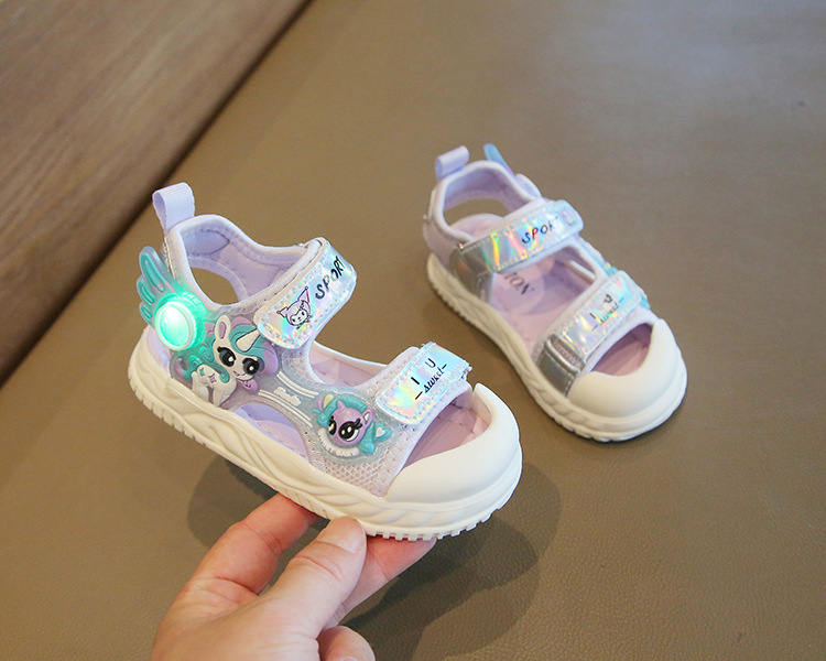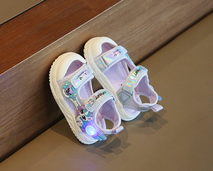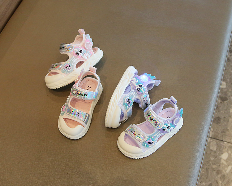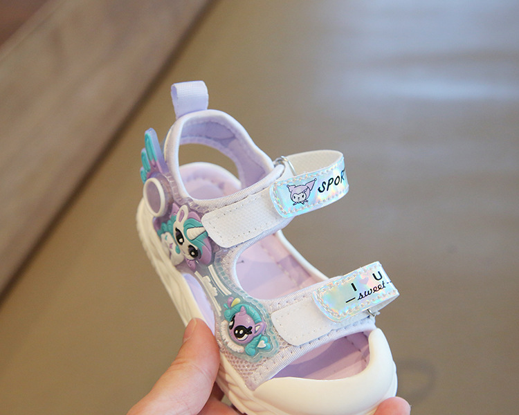 여름 새로운 소녀 샌들 아기 신발 발가락 부드러운 단독 비치 신발 만화 신발 공주 신발스토어 가기