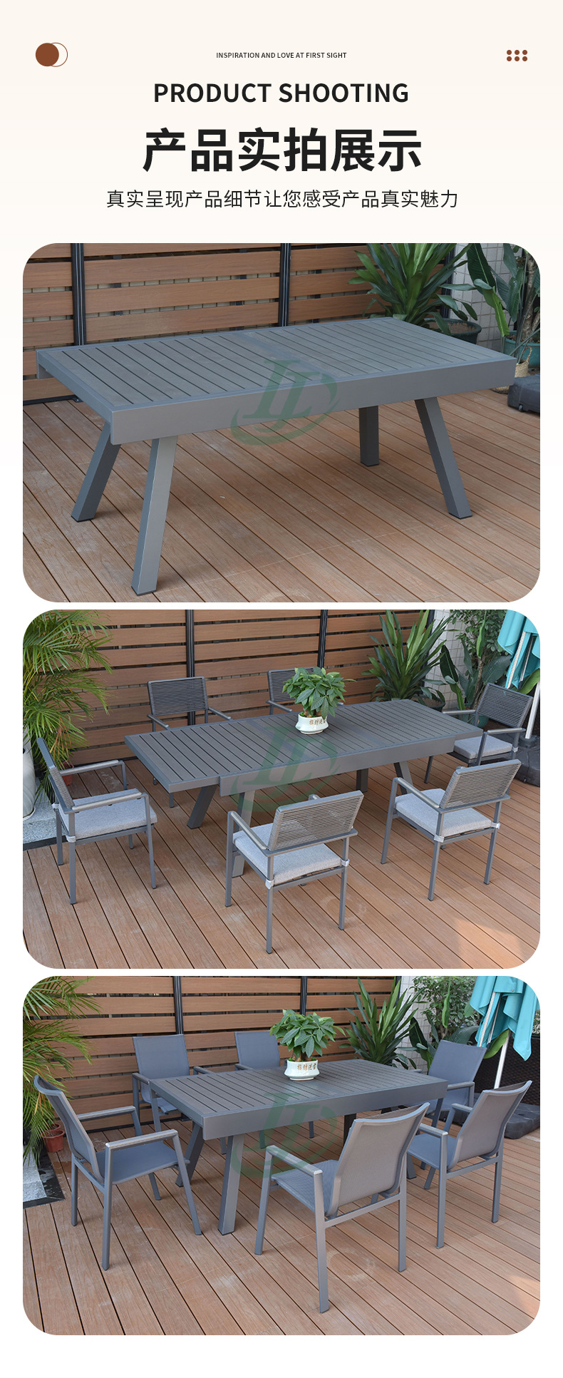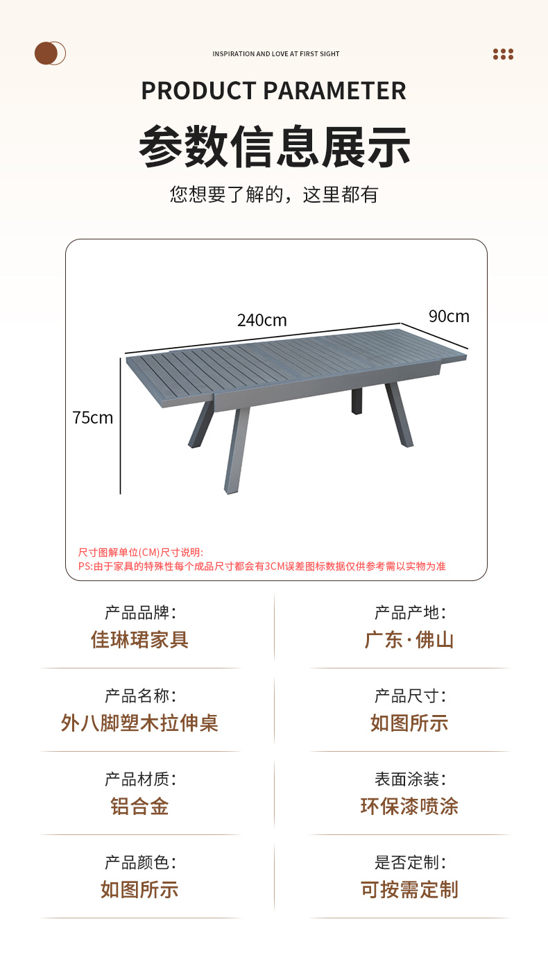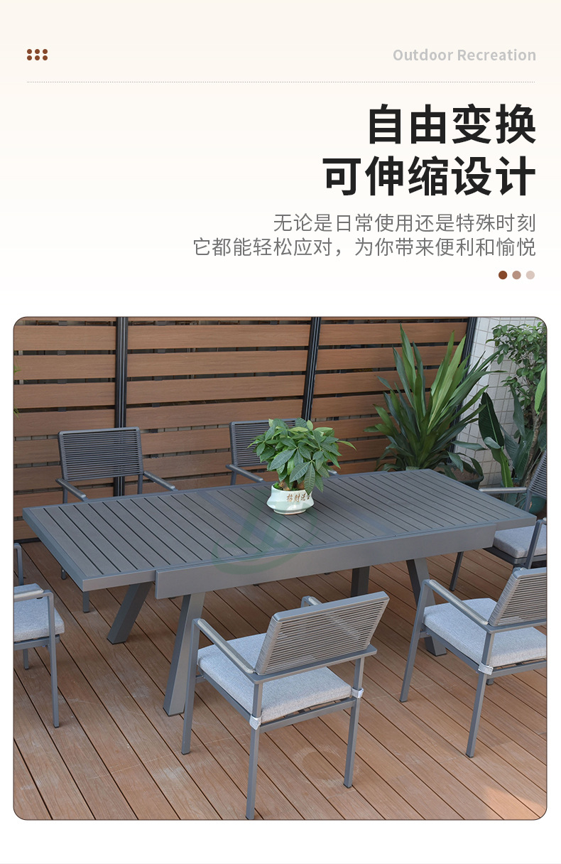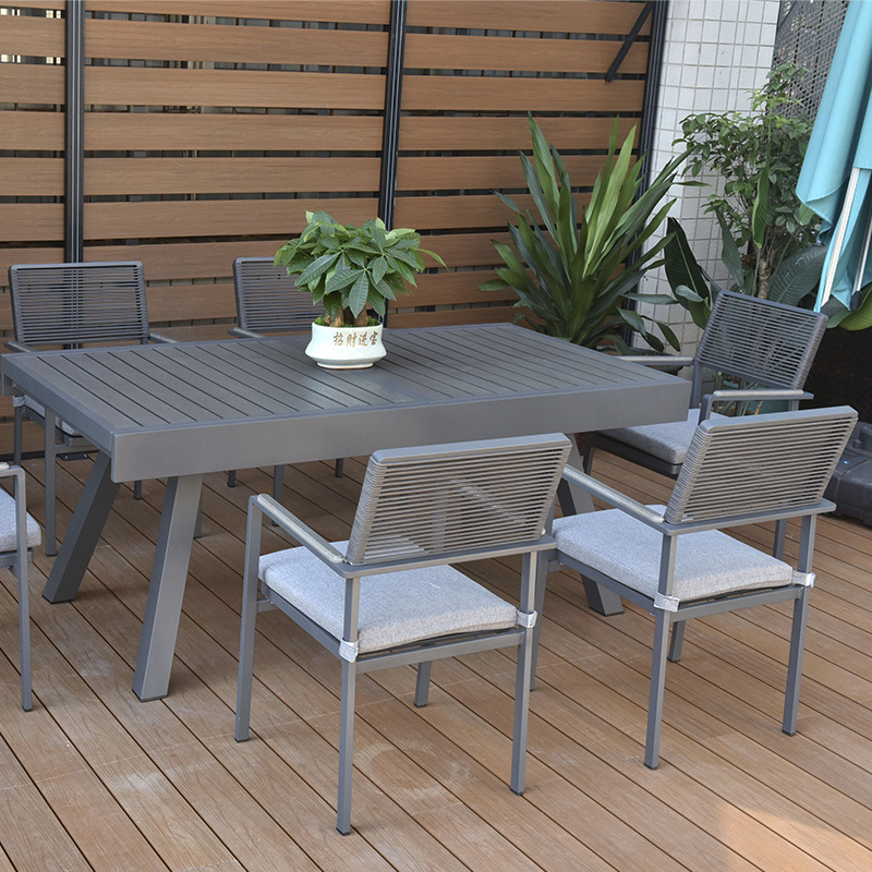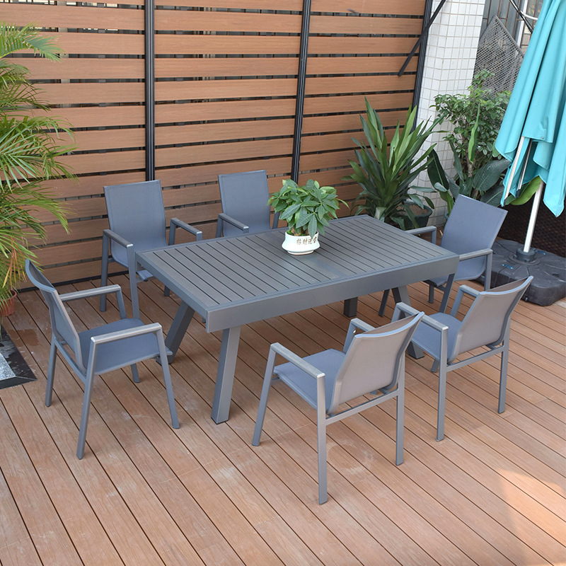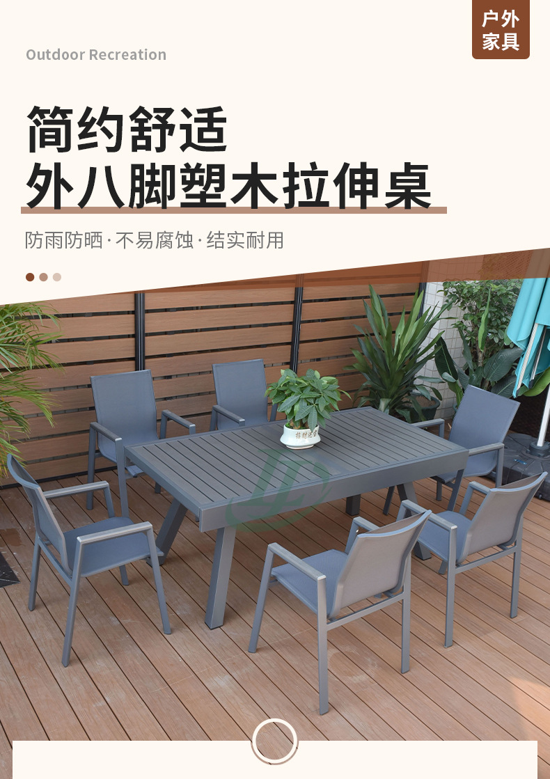 개폐식 부식 방지 알루미늄 합금 플라스틱 나무 식탁 블랙 야외 안뜰 8 다리 스트레치 테이블 야외 발코니 식탁