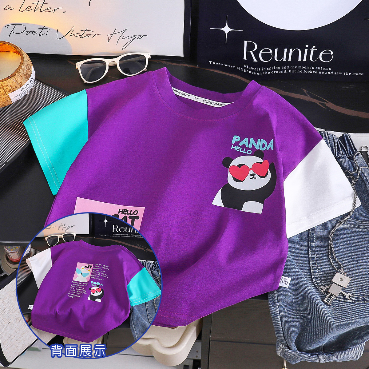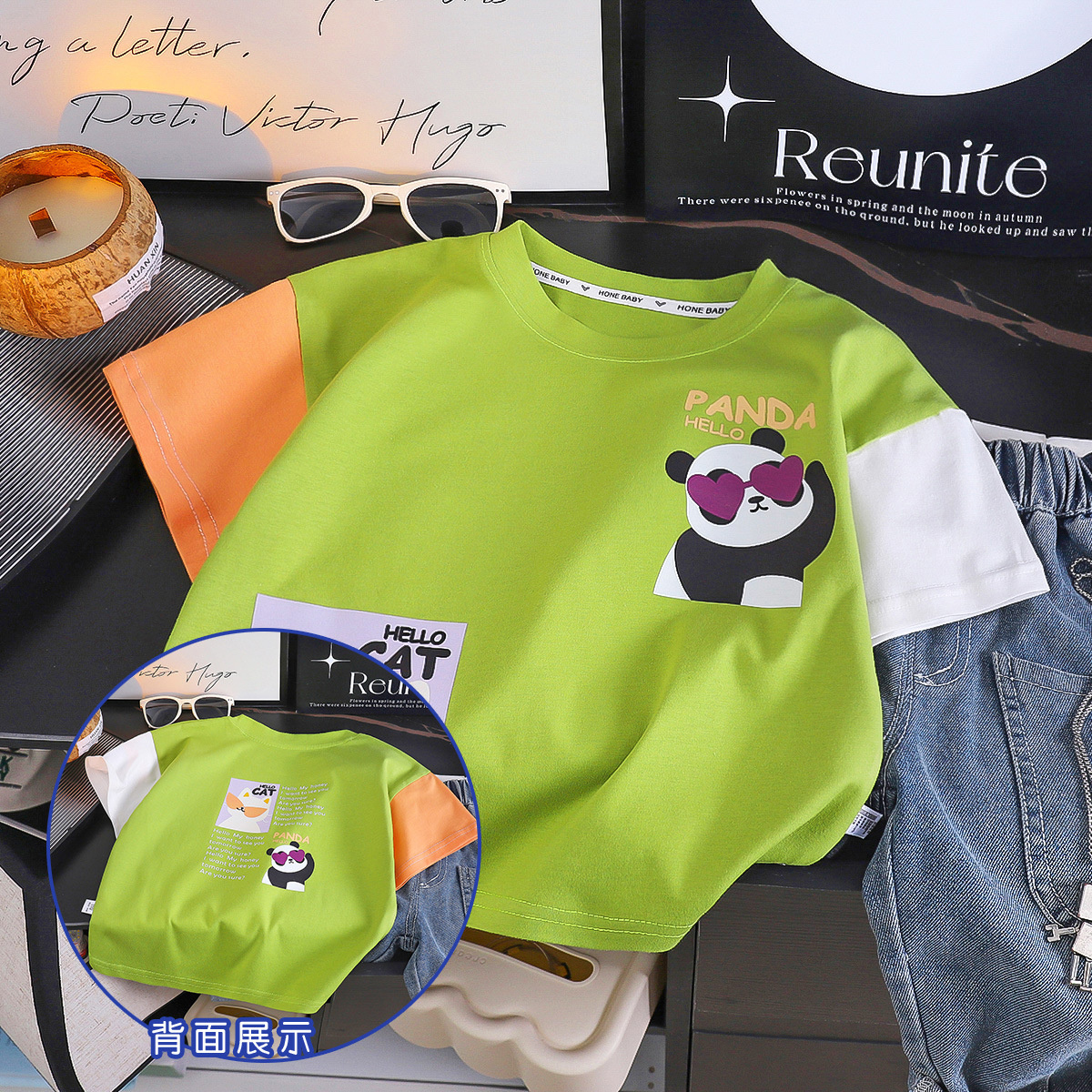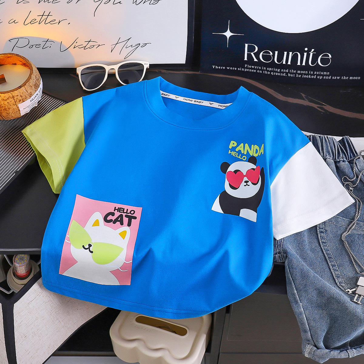 어린이 새 소년과 소녀 여름 만화 컬러 매칭 아기의 반소매 코튼 서양식 티셔츠 반소매 어린이 탑스토어 가기