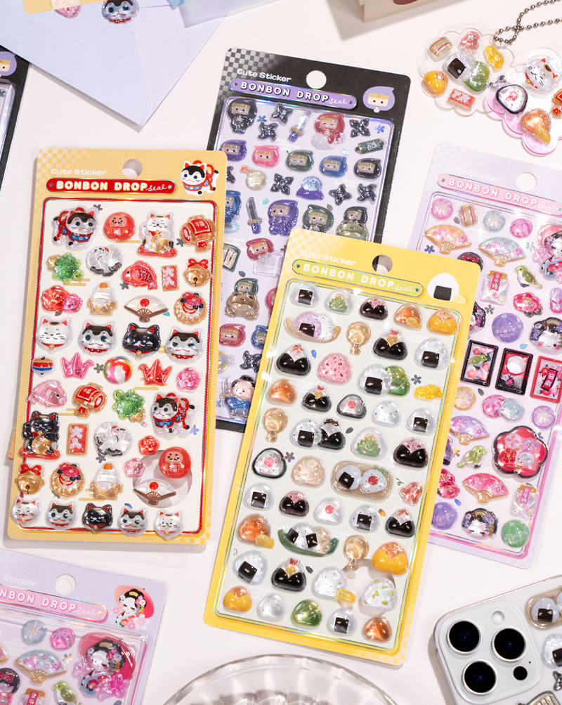 일본 만화 크리스탈 스티커 3D 입체 구호 스티커 보석 스티커 어린이 소녀 휴대 전화 장식 스티커 보너스 스티커스토어 가기