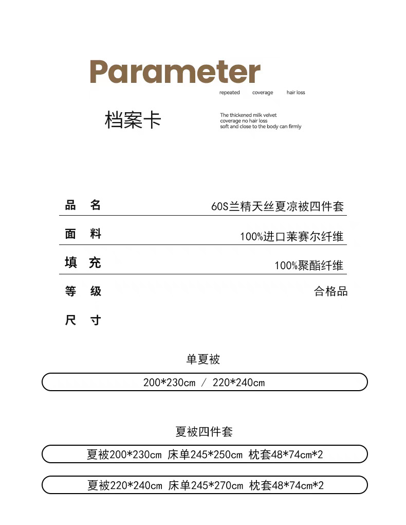 • 1.5m 침대 시트 스타일 여름 이불 4종 세트 [여름 이불 사이즈 200x230cm]