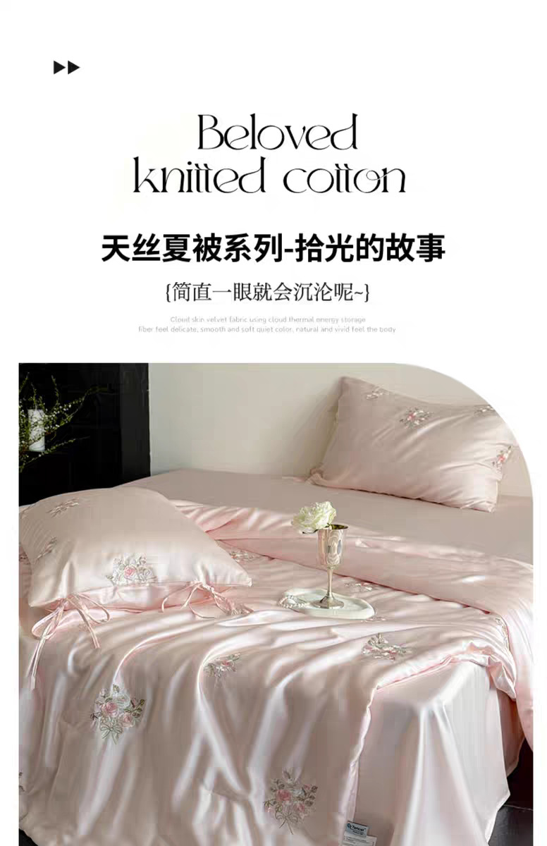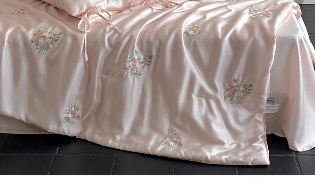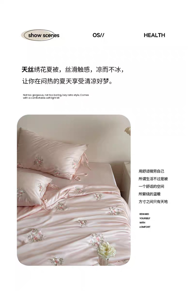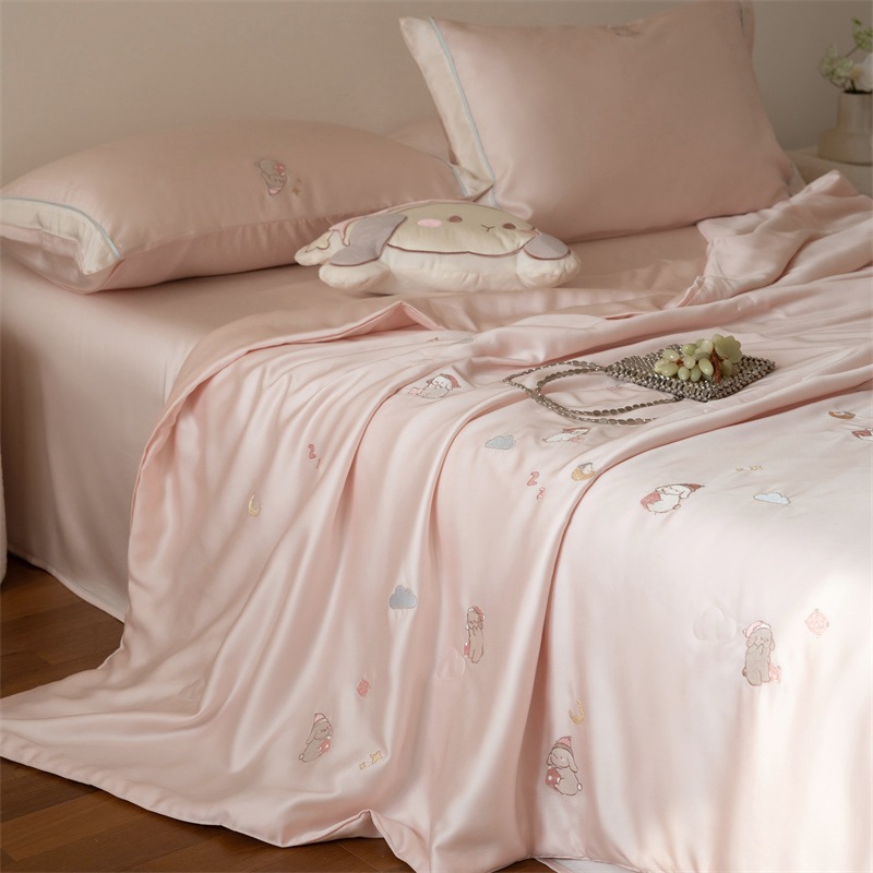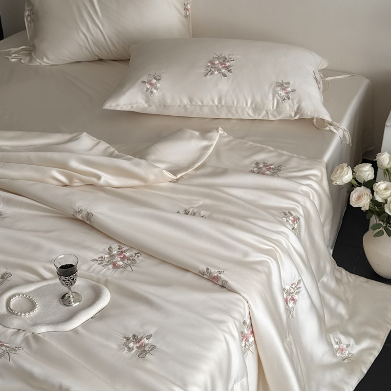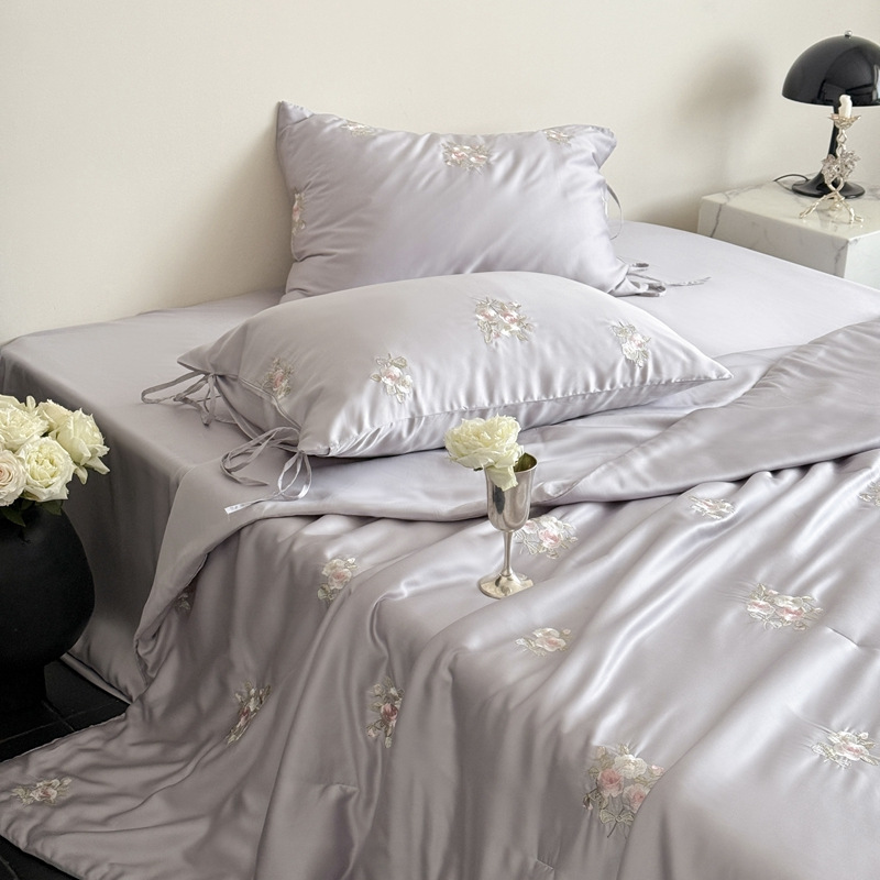 여름 60 양면 텐셀 여름 쿨 퀼트 4 피스 세트 소녀의 하트 꽃 자수 세척 가능한 쿨 에어컨 얇은 이불