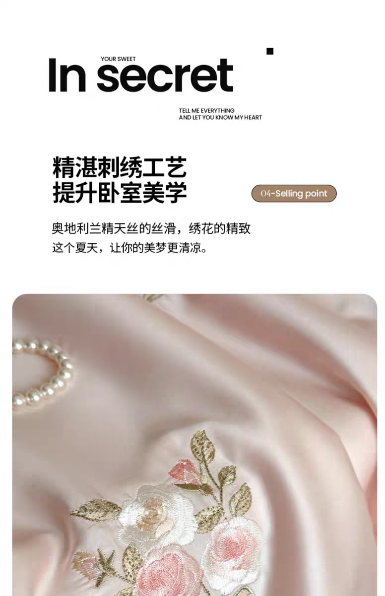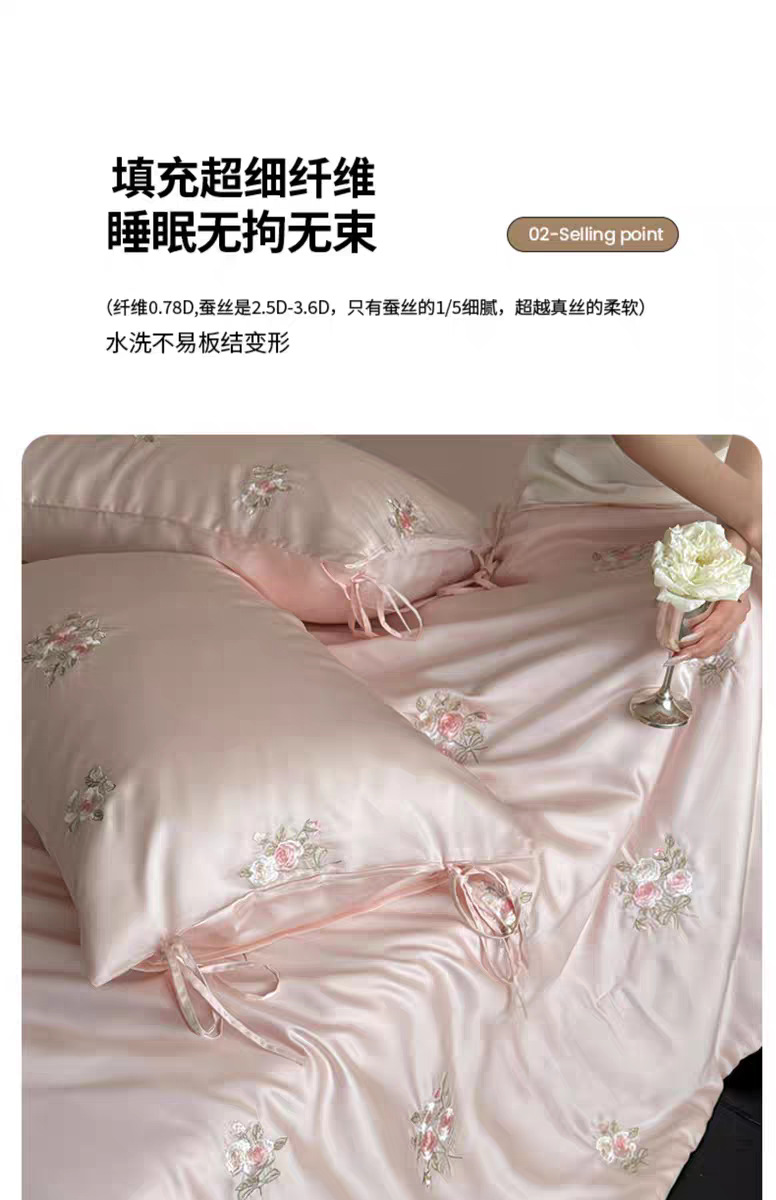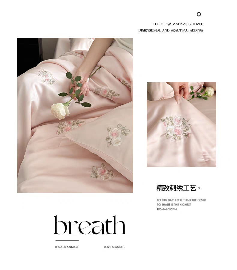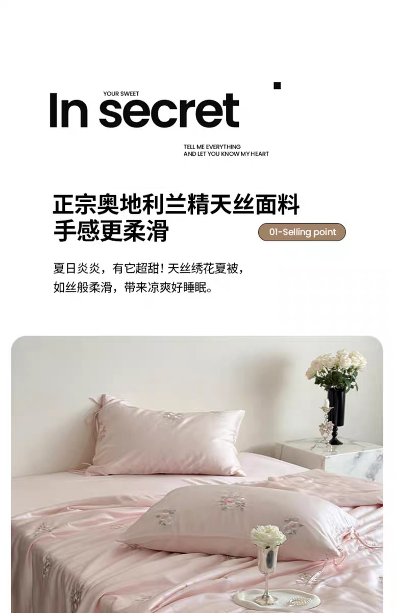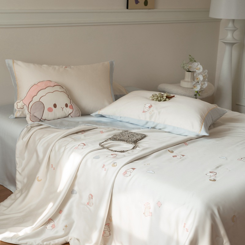 여름 60 양면 텐셀 여름 쿨 퀼트 4 피스 세트 소녀의 하트 꽃 자수 세척 가능한 쿨 에어컨 얇은 이불