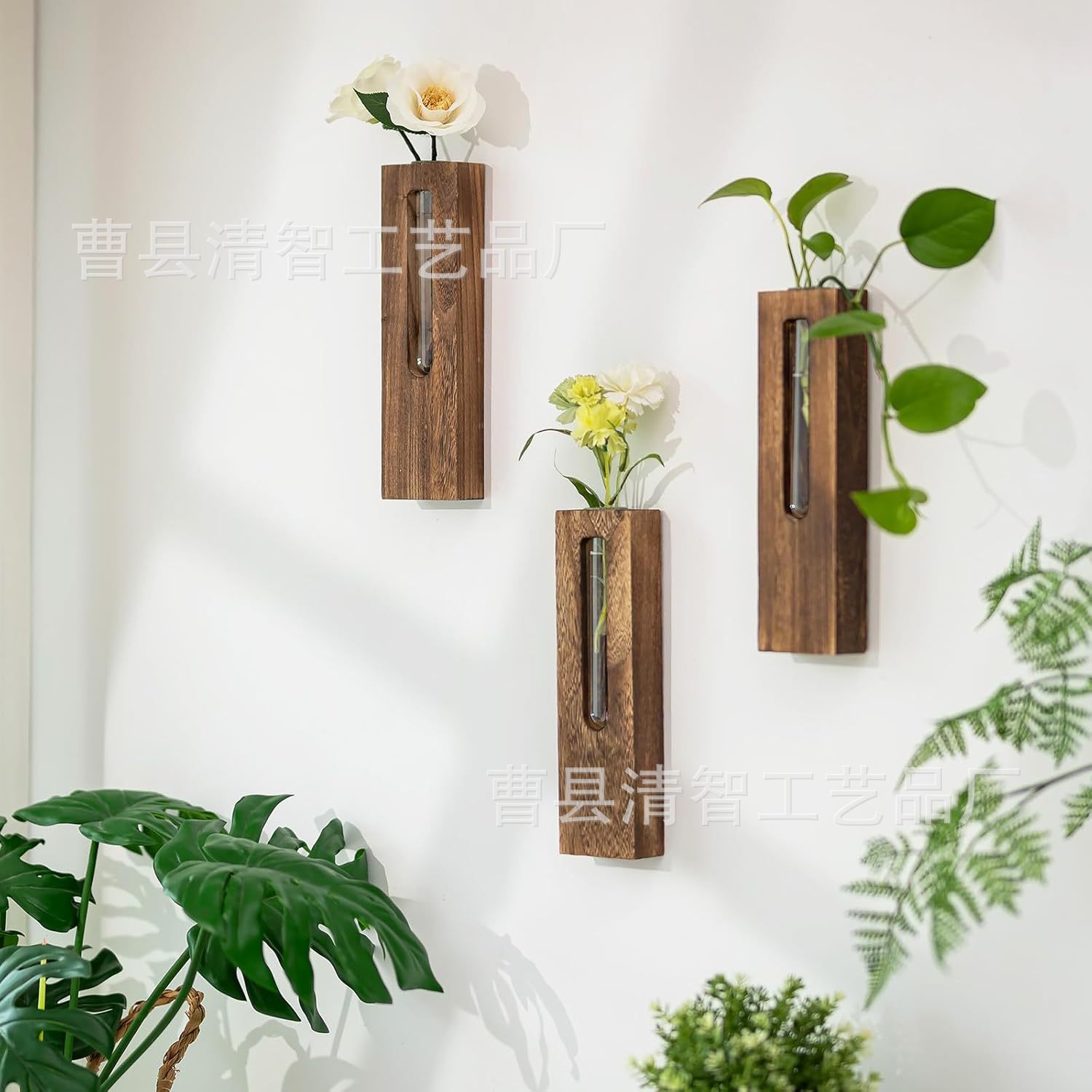 나무 벽 꽃병 물 꽃꽂이 거실 벽 단단한 나무 보관 장식 침실 일본식 꽃 스탠드 제조업체 배치