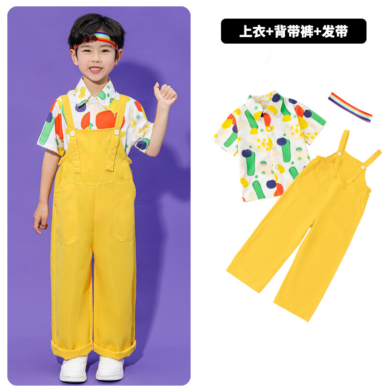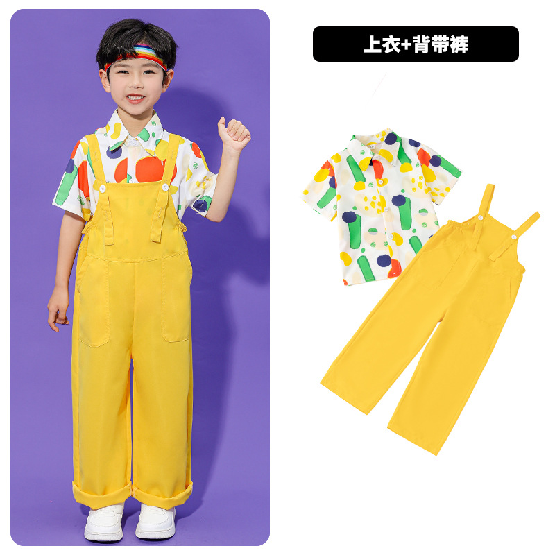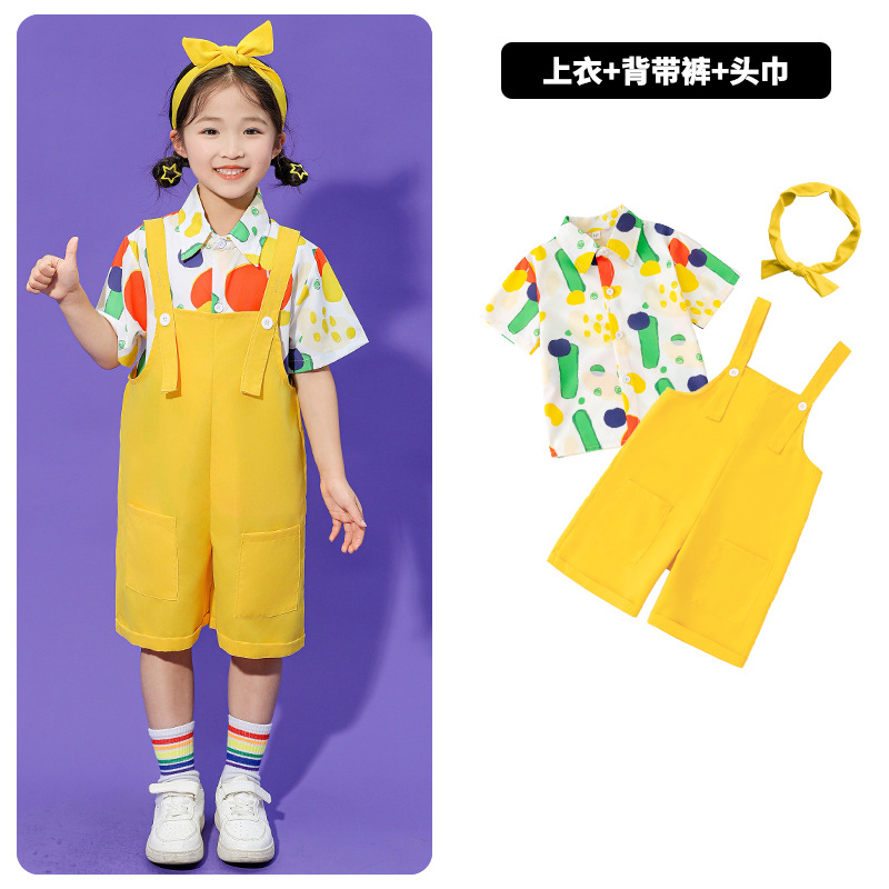 어린이 어린이 치어 리더 의상 유치원 귀여운 노란색 스트랩 바지 푹신한 스커트 게임 공연 의상스토어 가기