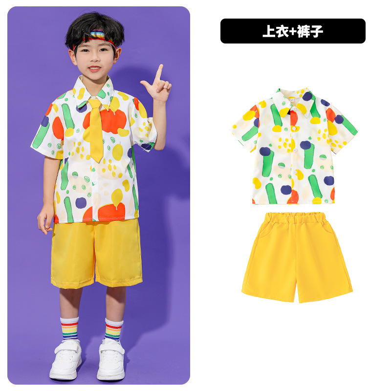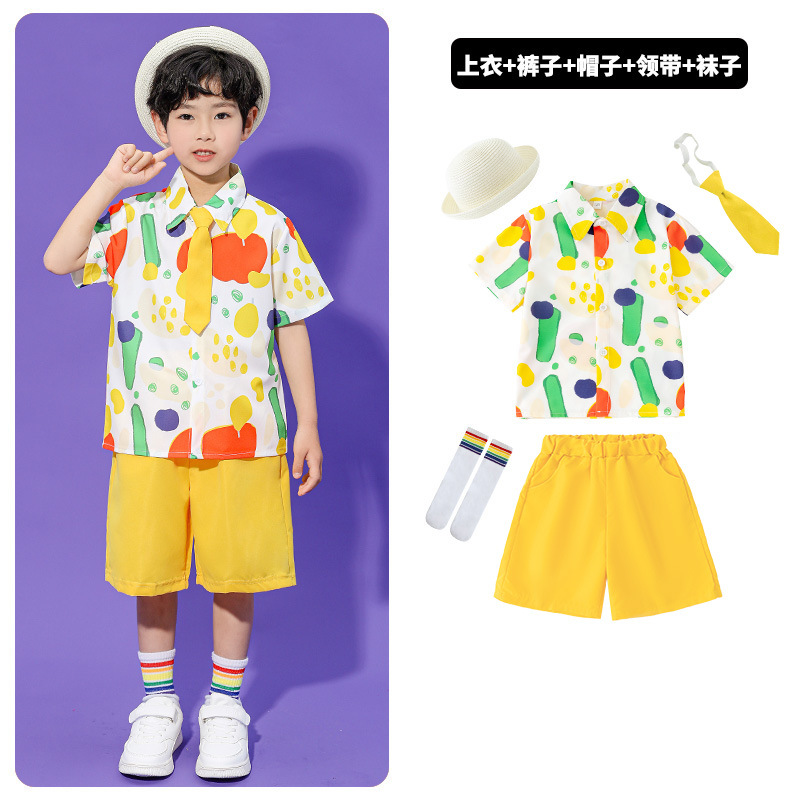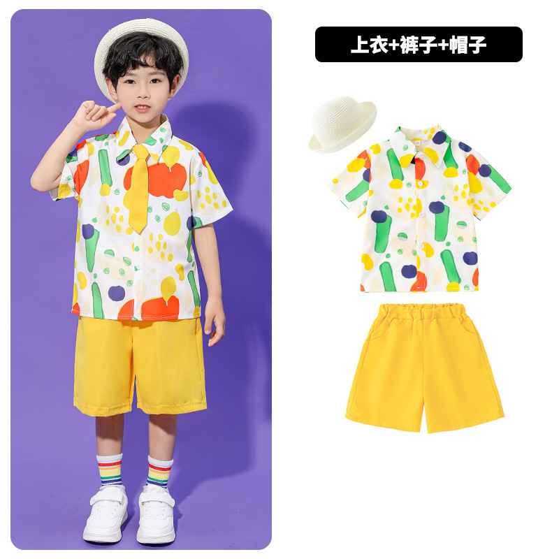 • 반바지 정장 [빨간색과 녹색 반팔 셔츠 + 순황색 반바지]