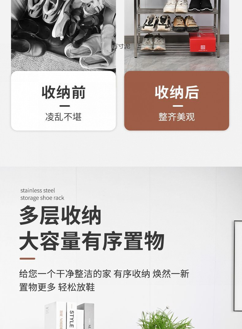 2025년형 두꺼운 스테인리스 다층 신발장, 좌석 포함, 가정 및 기숙사용 수납, 심플하고 현대적이며 내구성 있는 모델스토어 가기